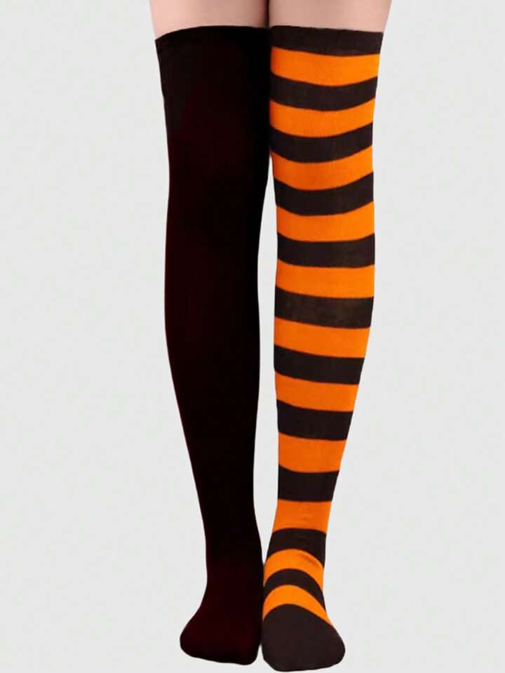 Goth Frauen 1 Paar Überknie Strümpfe mit Streifen Muster,