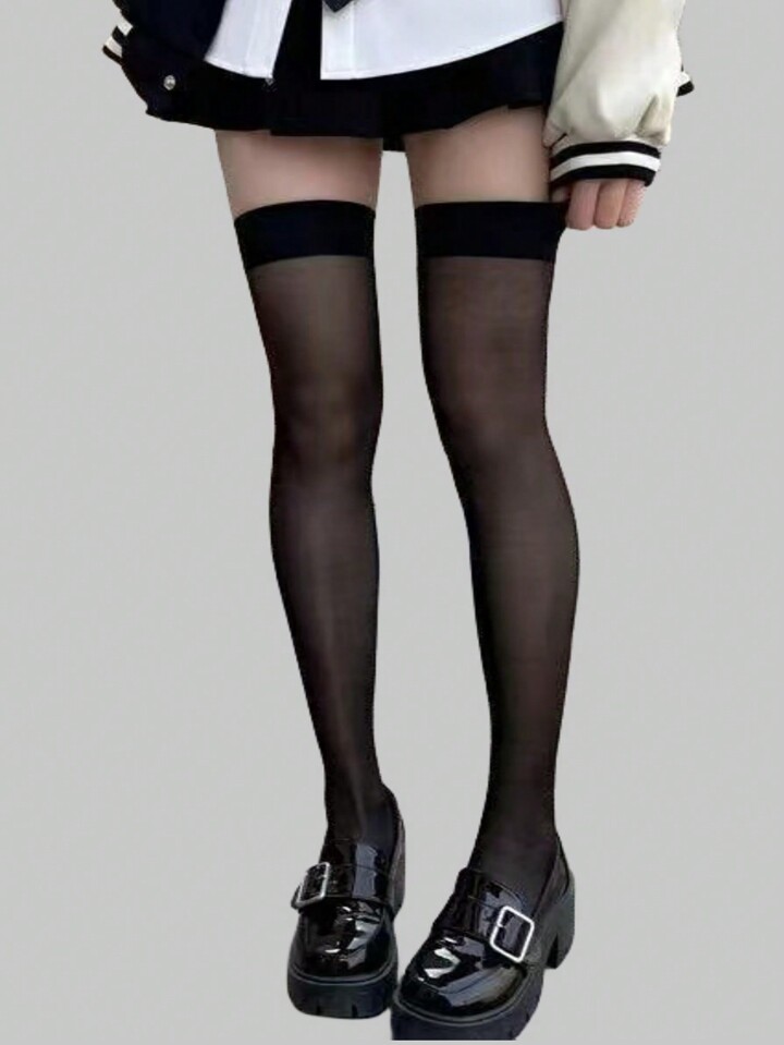 Goth 1 Paar Four Seasons Black Edge Splicing Overknee-strumpfhosen Für Damen
