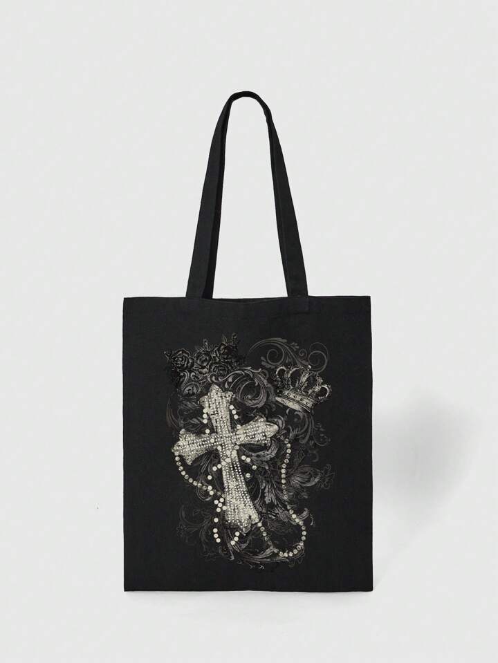 Goth 1 Stück Schwarze Damen Tragetasche mit Kreuz und Krone Dekor