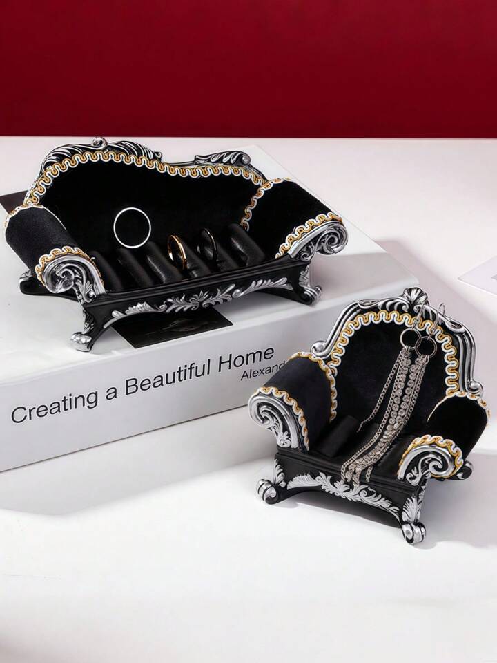 Goth 1 Stück kreative Schmuckaufbewahrungsbox, Mini-Schmuckaufbewahrungs-Sofa, europäischer Stil Harz-Sofa-Modell Ausstellungsständer - Miniatur Couch Vitrine Regal für Puppenhaus, Schmuck & Sammlerstücke Dekoration, Wohndekoration