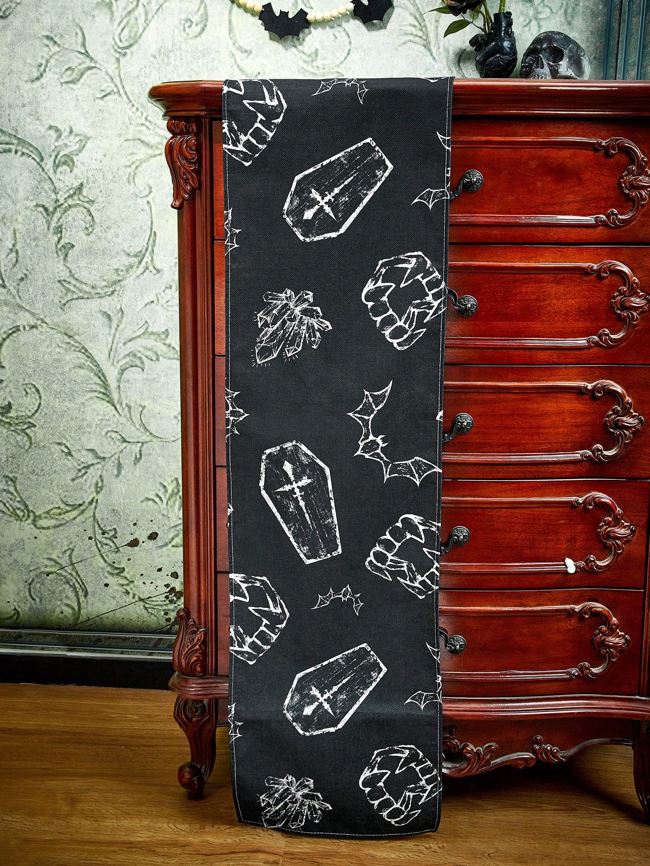 Goth 1 Stück Kreuz, & Fledermaus Muster, Tischläufer , Funky waschbar Küchentischläufer