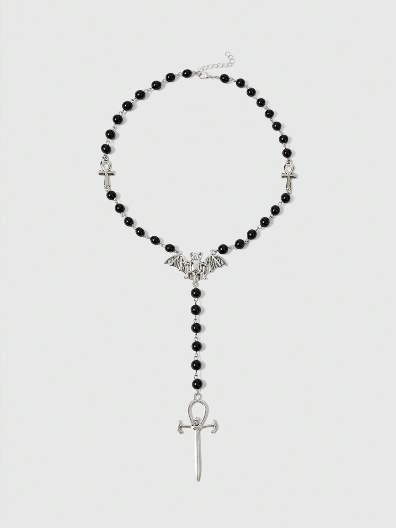 Goth 1 Stück modischer, personalisierter Metall-Harz Mehrfarbig Geometrisch Fledermaus Kreuz Schwert Perlen Anhänger Halskette, geeignet für Party, Alltag, Halloween, Schmuck, Kostümzubehör
