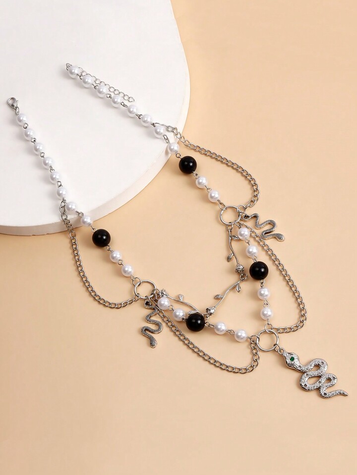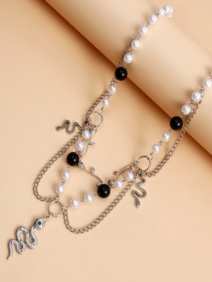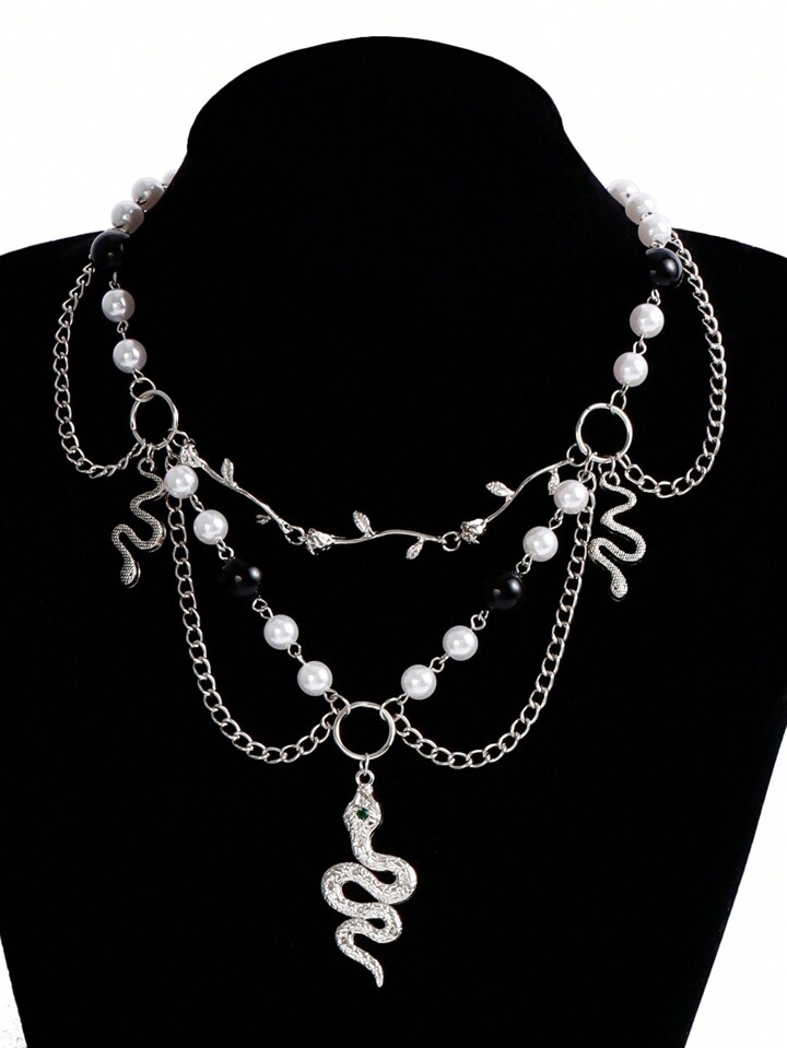 Goth 1 Stück Halskette mit Anhänger in Form von verdrehten Schlangen aus Kunstperlen