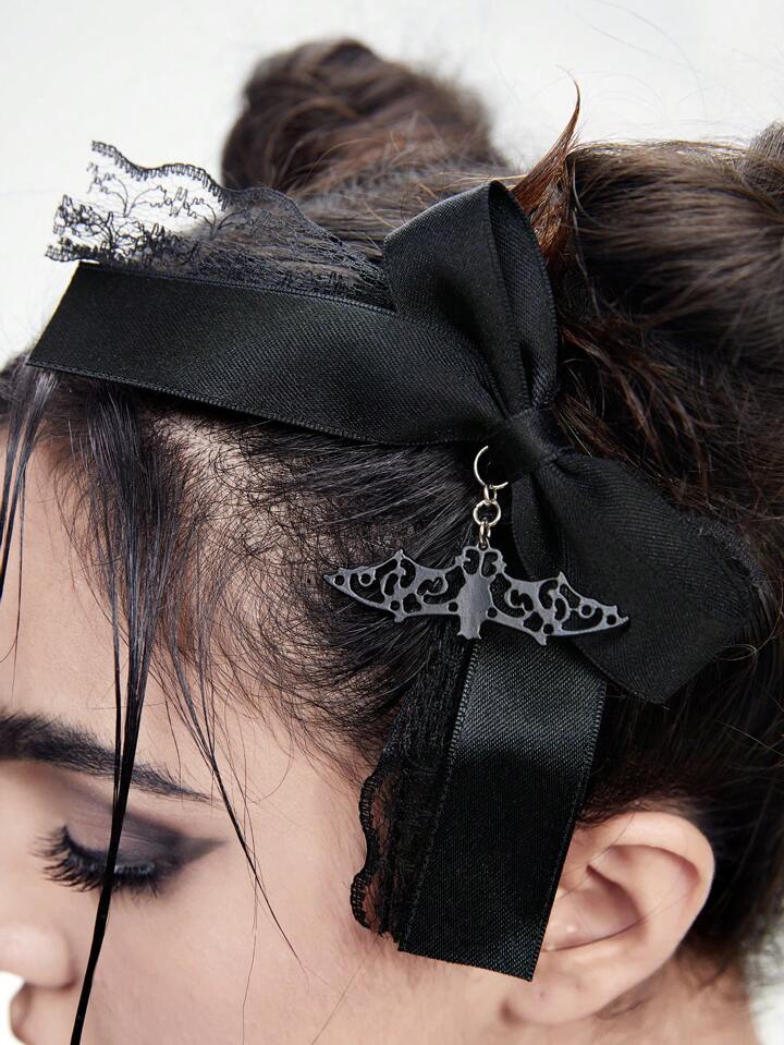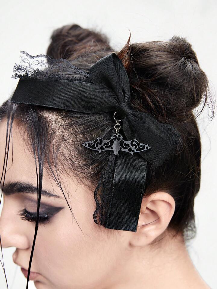 1 Stück Gothic schwarzer Fledermaus Schmuck Haarspange mit Schleife