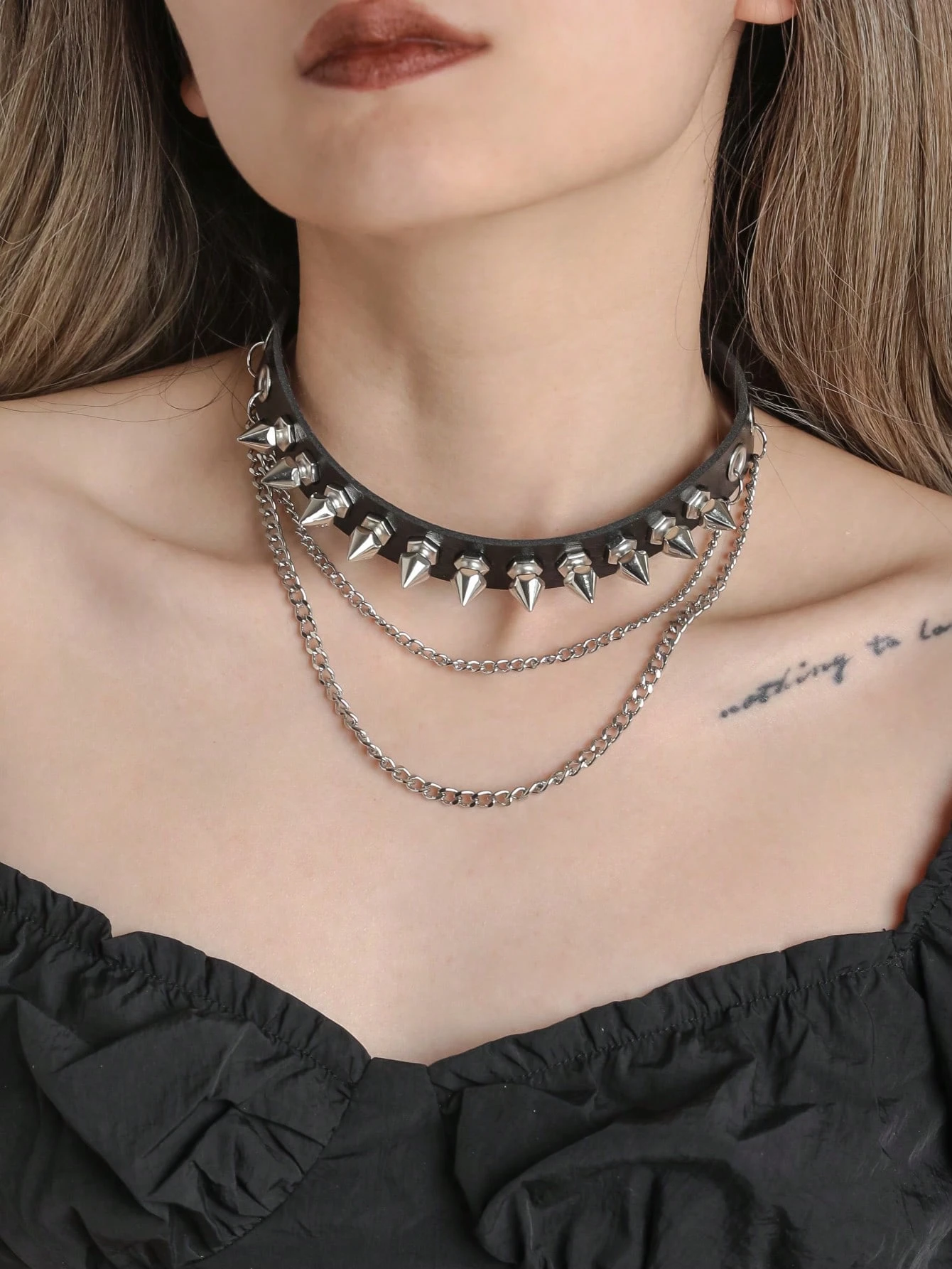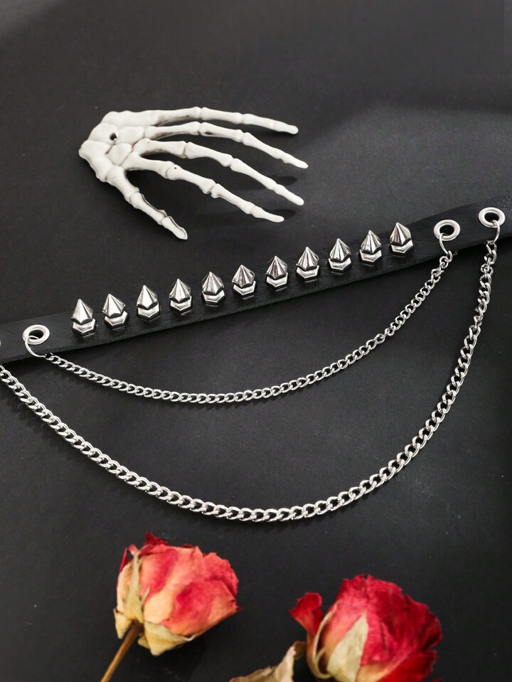 Goth 1 Stück Hip-hop Punk Style Pu Leder Damen Kragen Mit Nieten Doppelkette