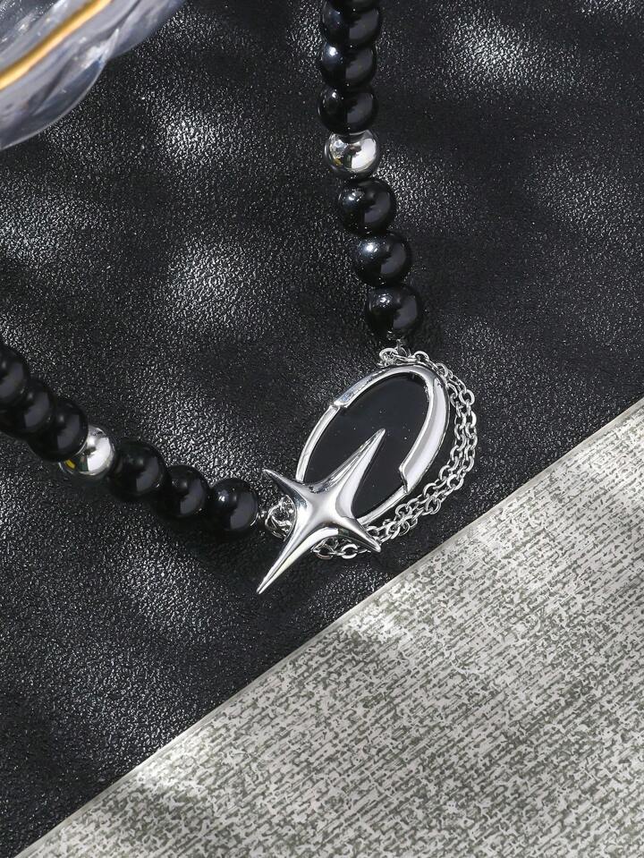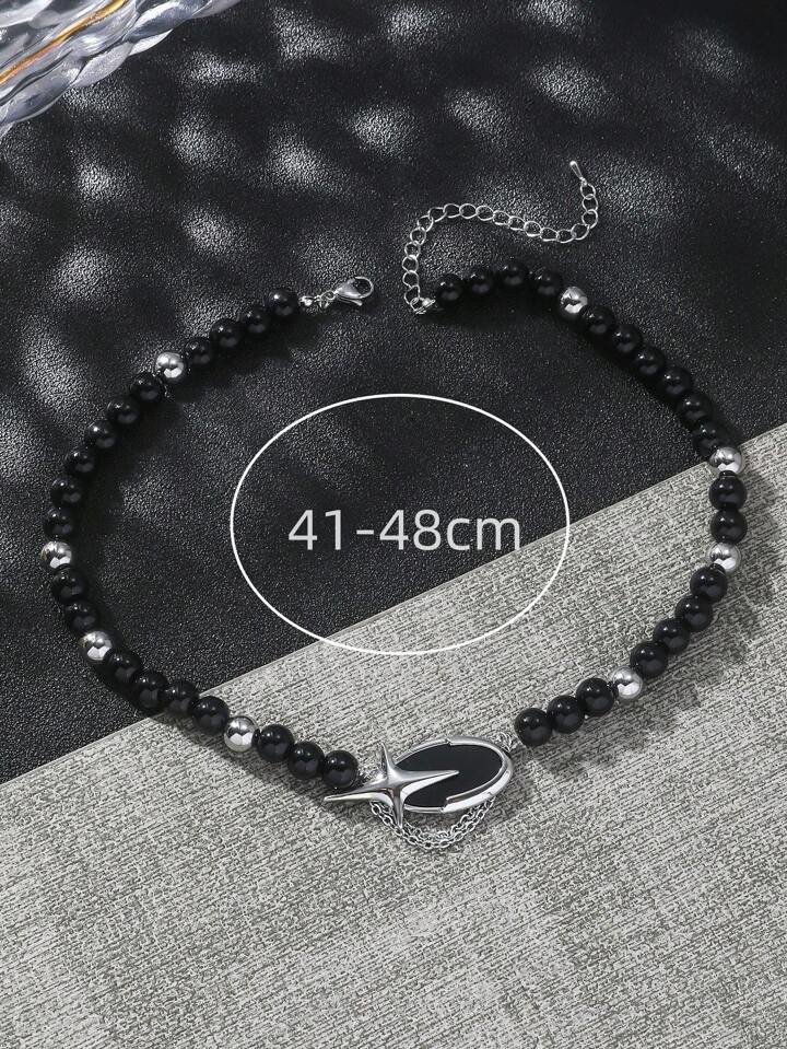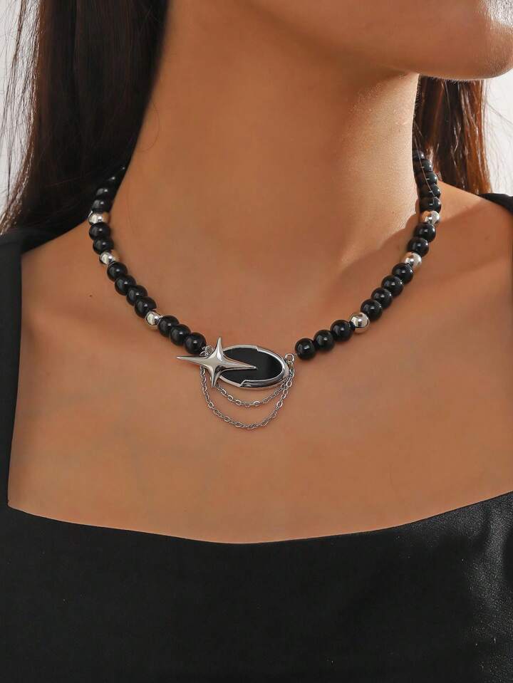 Goth 1 Stück Hüft-hop Punk Style Vier-zackiger Stern & Glas Perlen Halskette Für Frauen Geeignet Für Den Täglichen Gebrauch