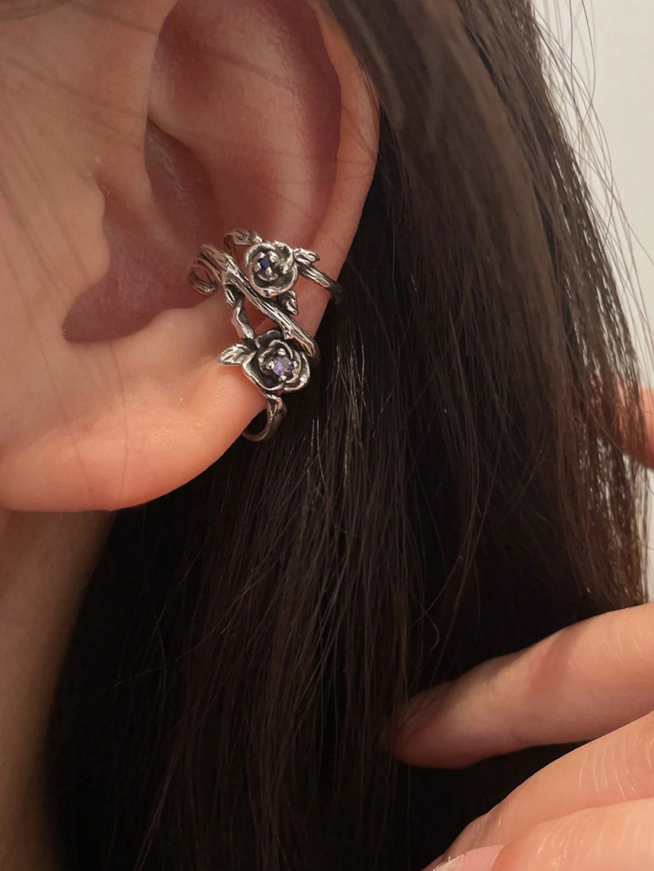 Goth 1 Stück Clip Lila Rose Blume Ohr