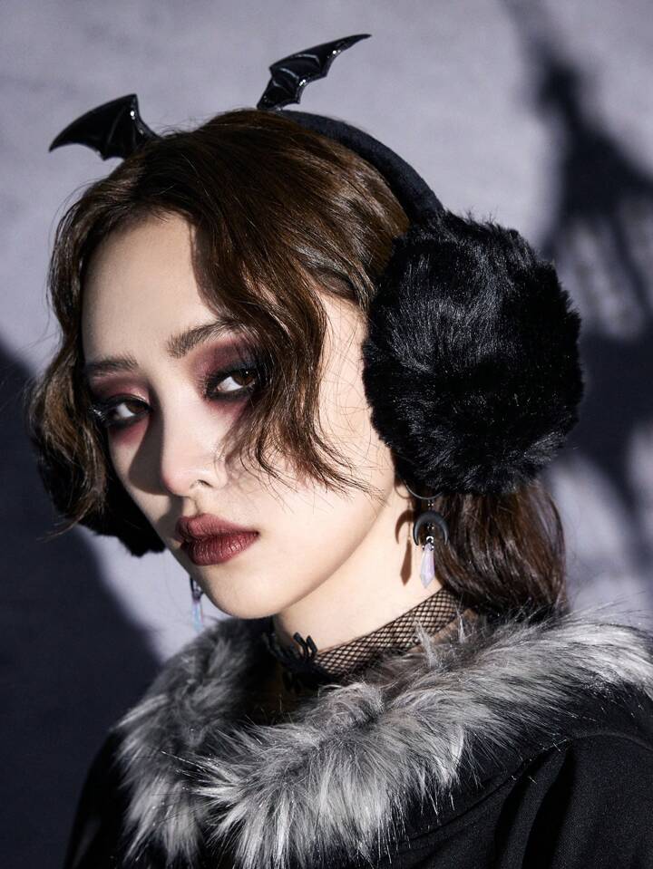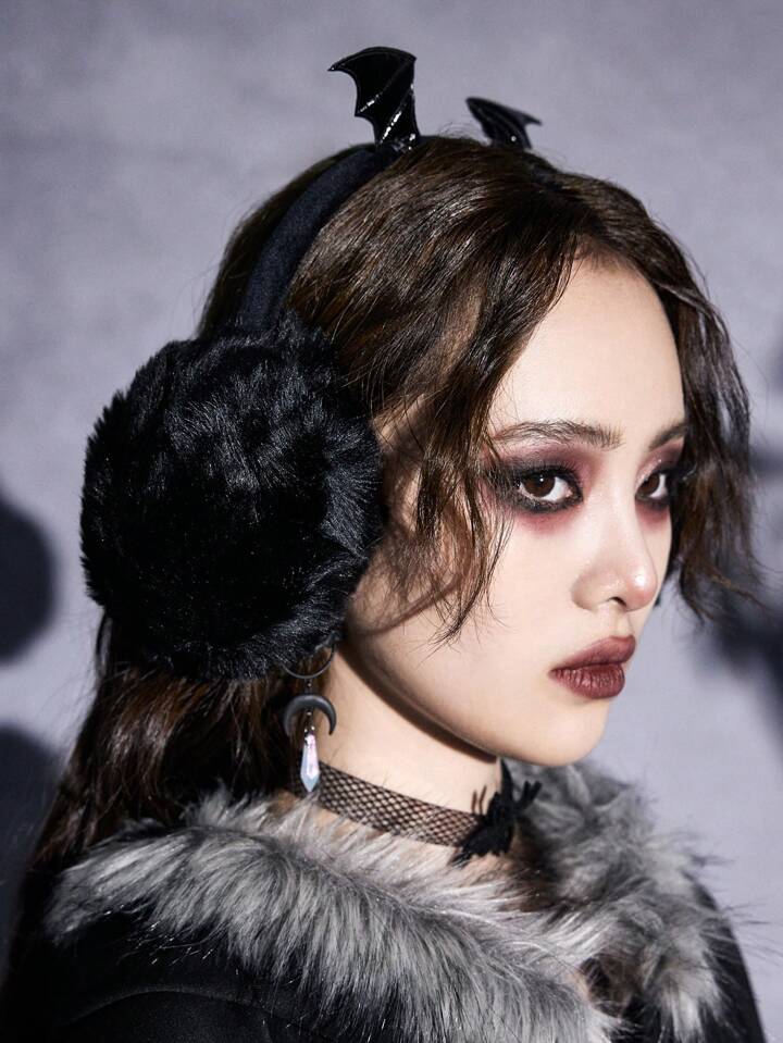 Goth 1 Stück Winter Ohrwärmer In Flügelform In Schwarz