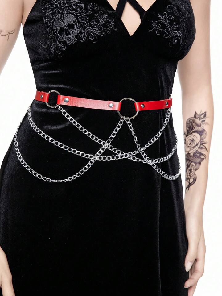Goth 1 Stück Frauen Rot 4-Ketten Punk Stil Weihnachtsdekoration verstellbarer Taillengürtel Kleider Accessoire, vielseitig für den täglichen Gebrauch