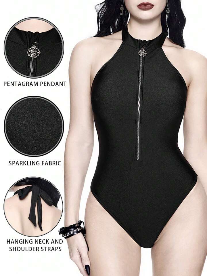 Goth 1 Stück Damen PU elastisches Ketten-Halskette mit Reißverschluss-Verschluss und Stern Anhänger