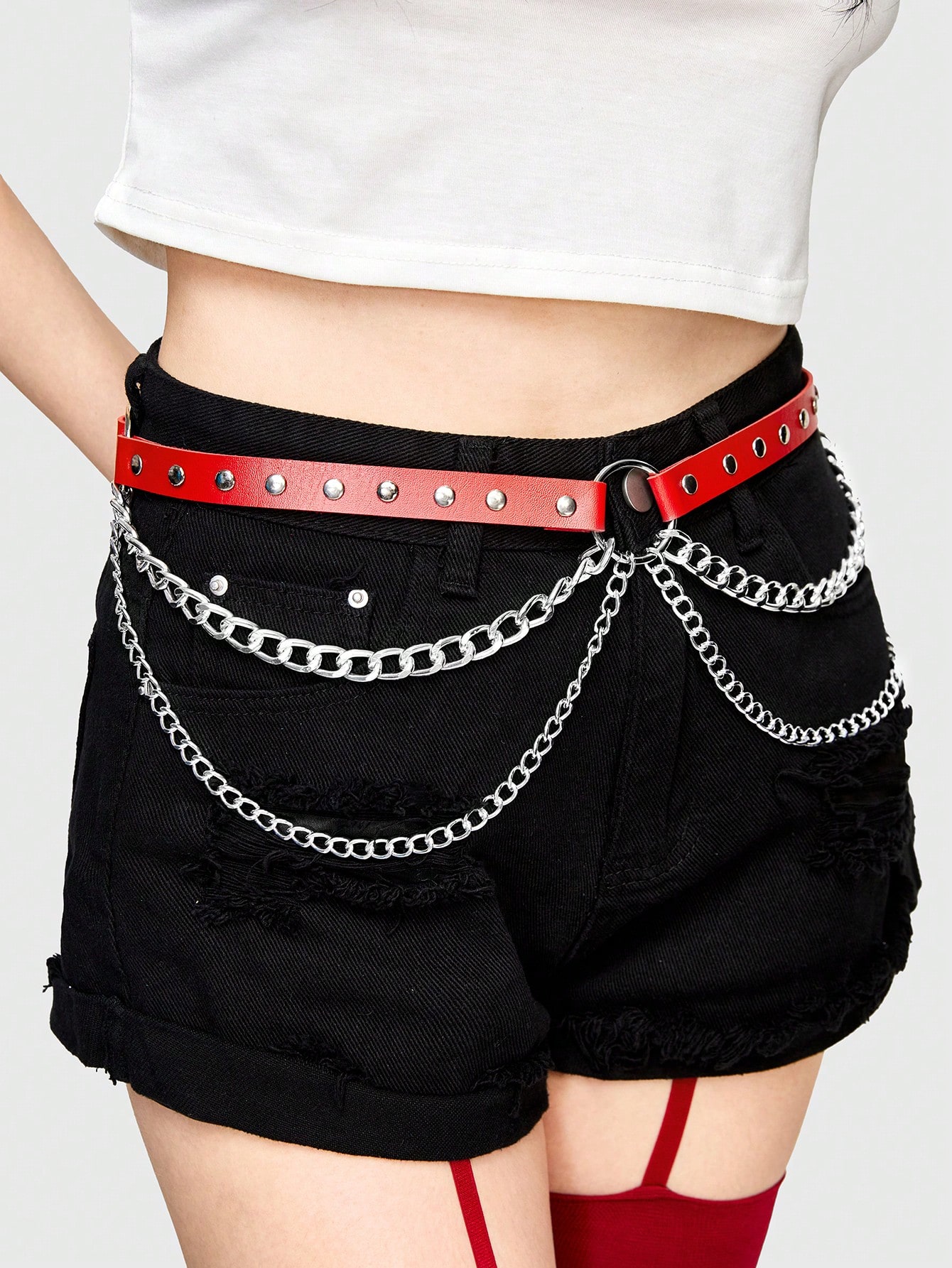 Goth 1 Stück Damen Roter Ketten Gürtel Mit Nieten, Punk Style Zubehör Für Den Täglichen Gebrauch