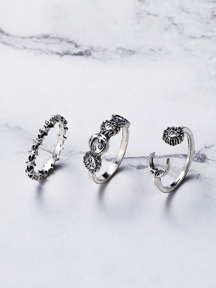 Goth 1set/3 Stücke Sterne & Mond Ring Set