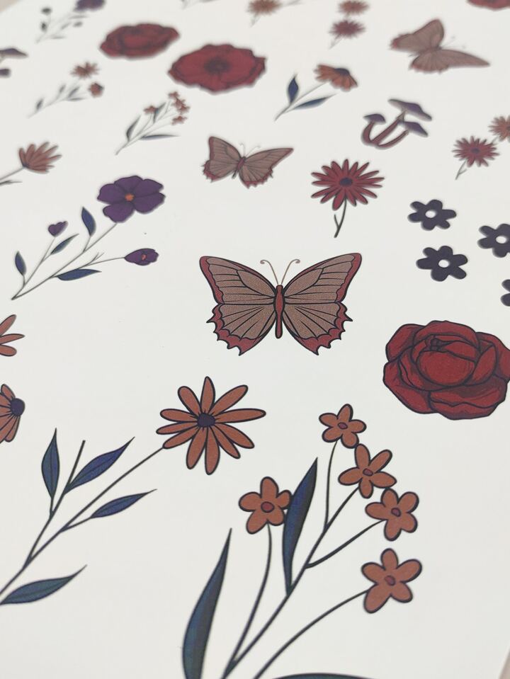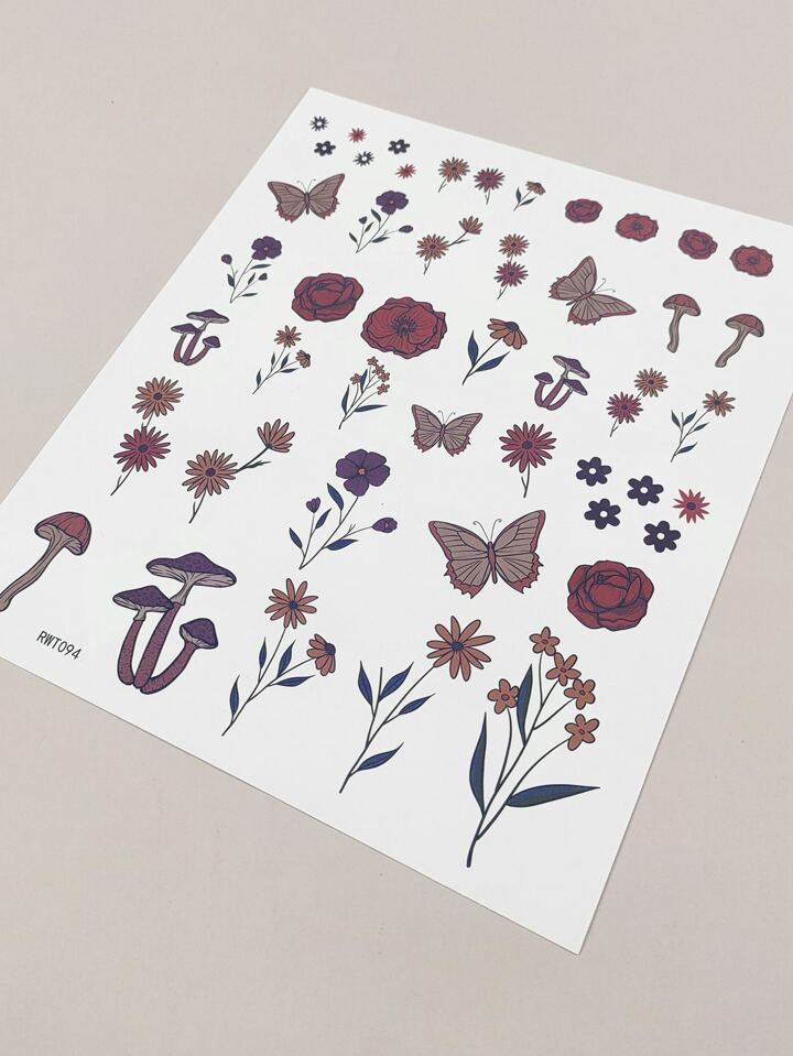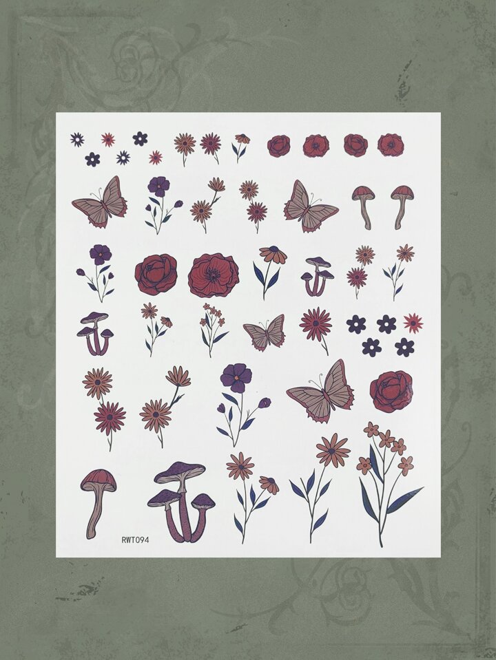 Goth 1 Blatt Tattoo Aufkleber mit Blume & Schmetterling Muster