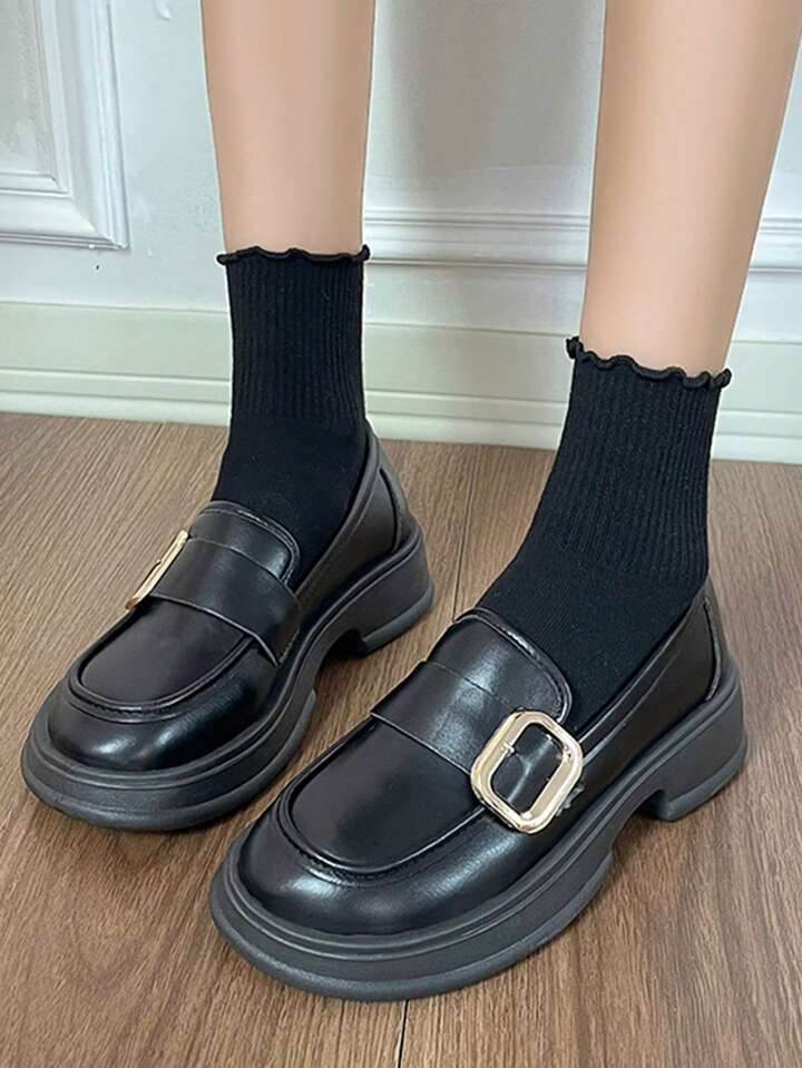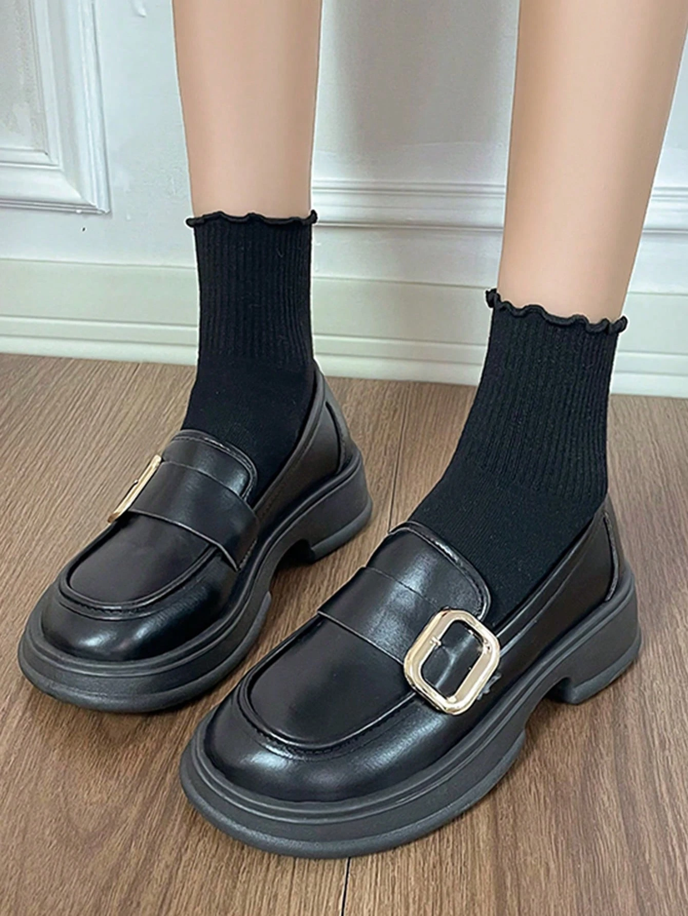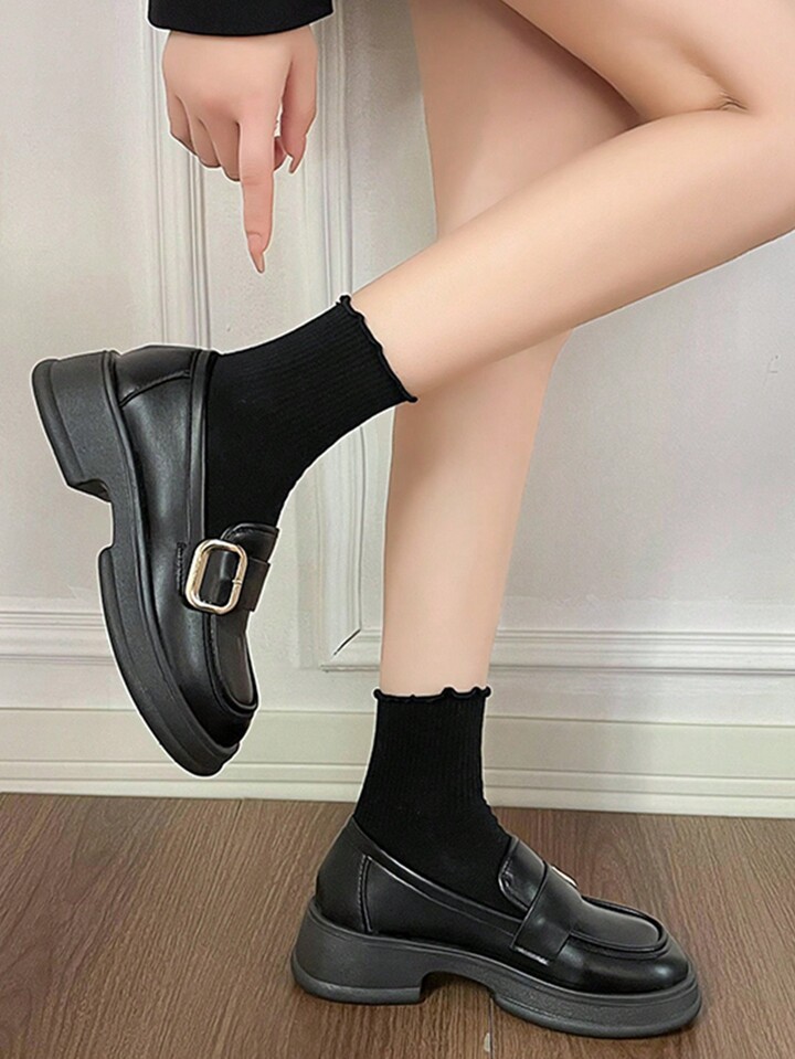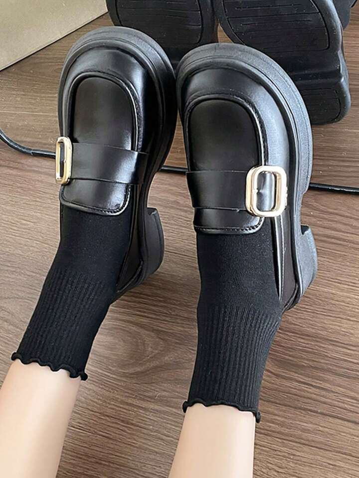 Goth Neue Ankunft 2023 Damen Klassische Elegante Schwarze Runde Zehen Schule Stil Blockabsatz Dicke Sohle Schuhe