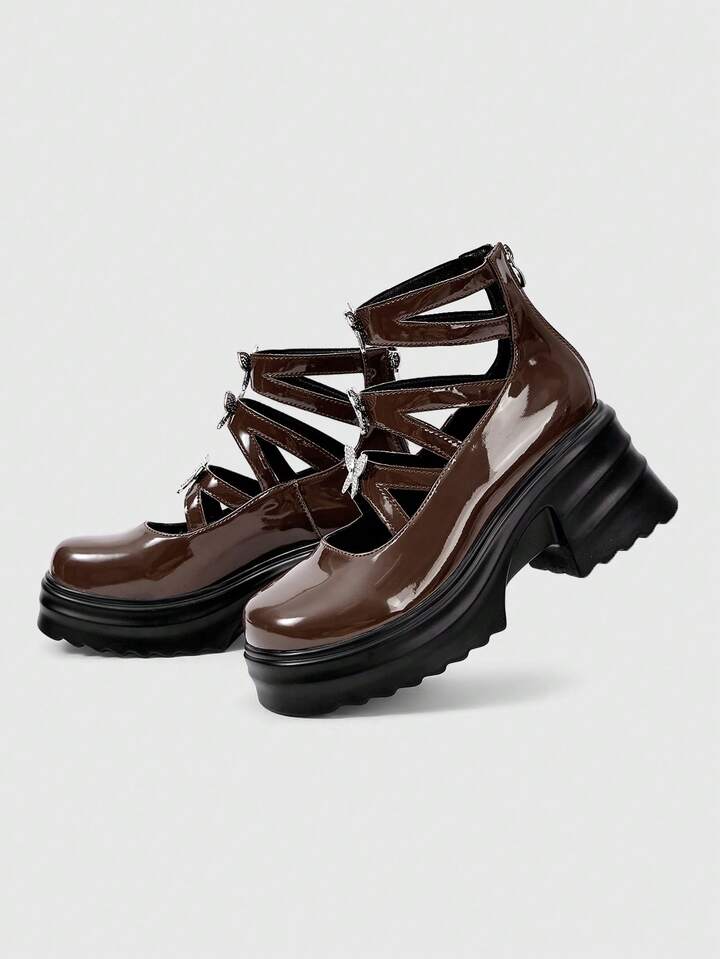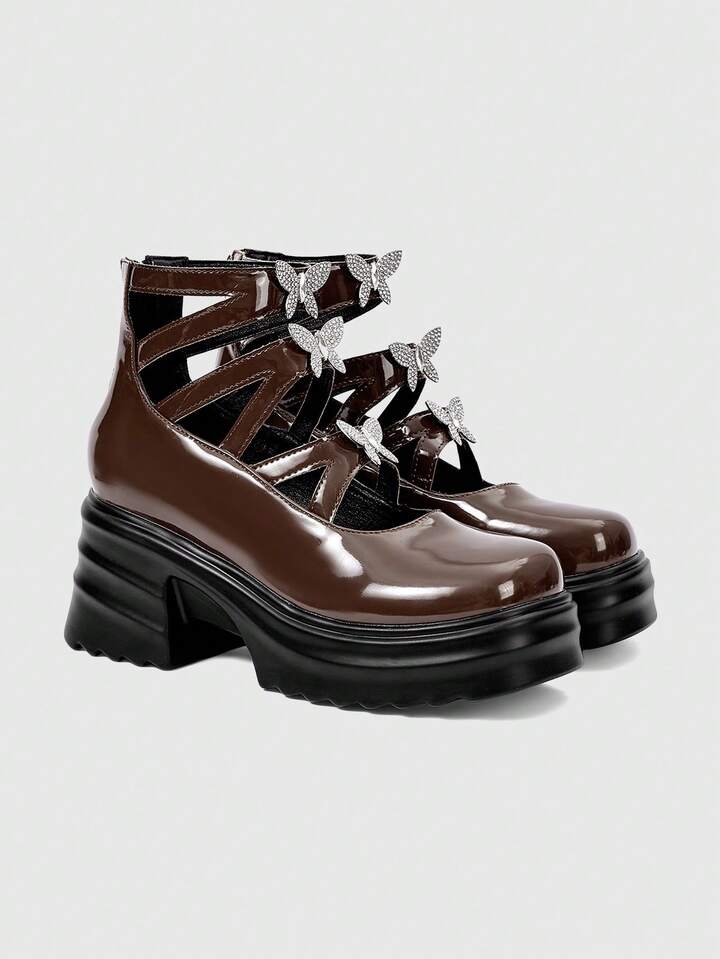 Goth 2024 neue Mode Mary Jane Street-Style Damenschuhe, Absatz dick, runde Zehenform, vielseitig, Pendeln, minimalistische Flats, Frühling
