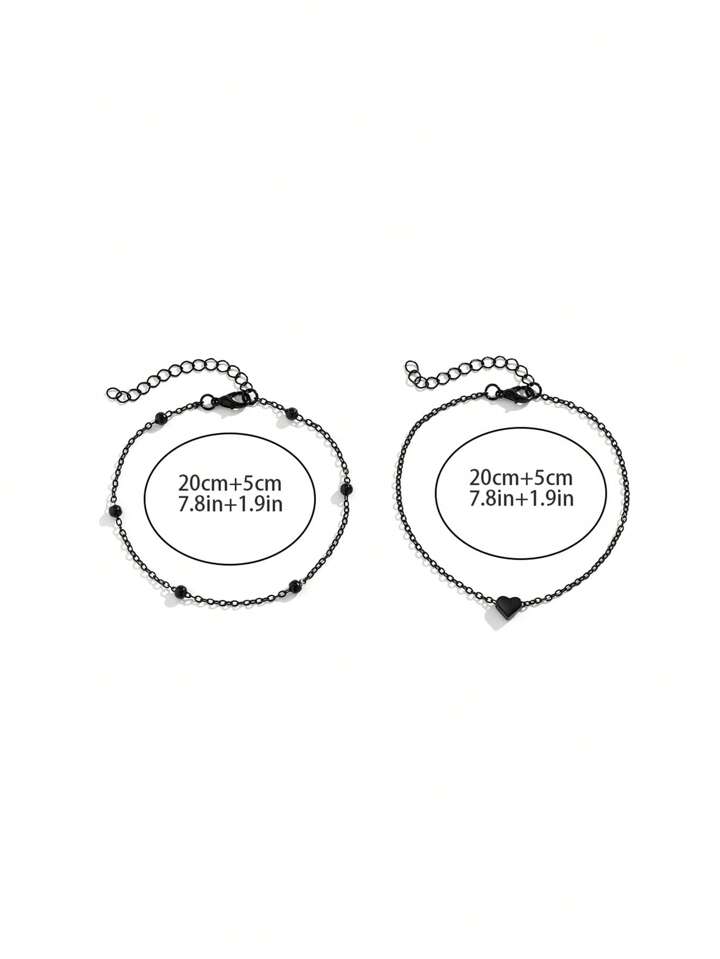 Goth 2 Stücke modische Fußkettchen aus Eisen mit Herz und Perlendekor für Damen zur täglichen Dekoration