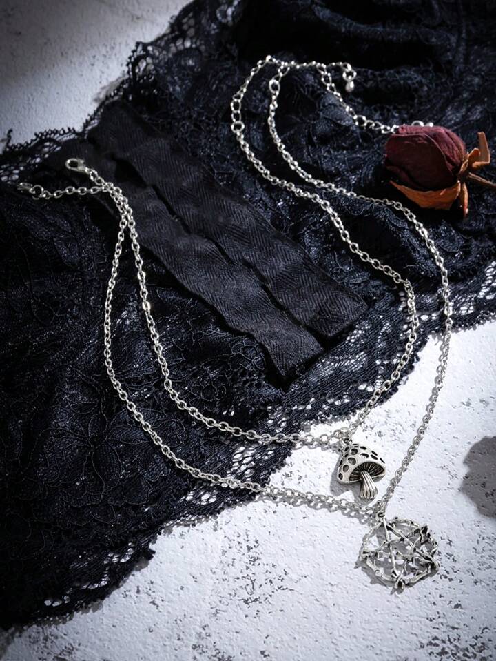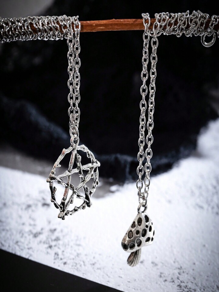 Goth 2 Stücke modische Zinklegierungs-Pilz- und Stern-Charm-Halskette für Frauen zur täglichen Dekoration