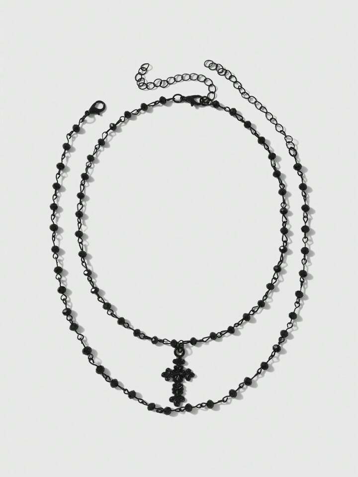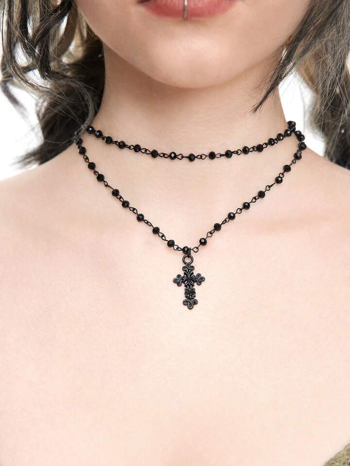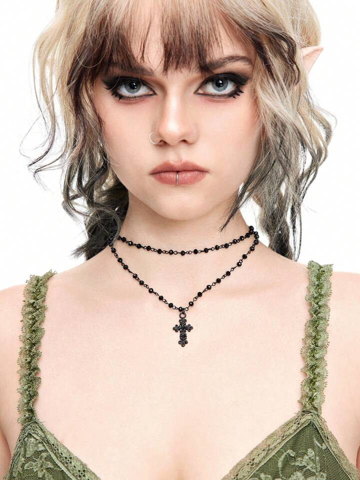 Goth 2 Stücke modische Kreuz Anhänger Halskette Set im Punk Stil für Frauen, ideal für den täglichen Gebrauch oder Partys