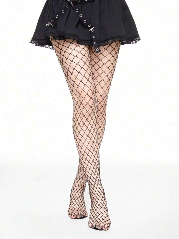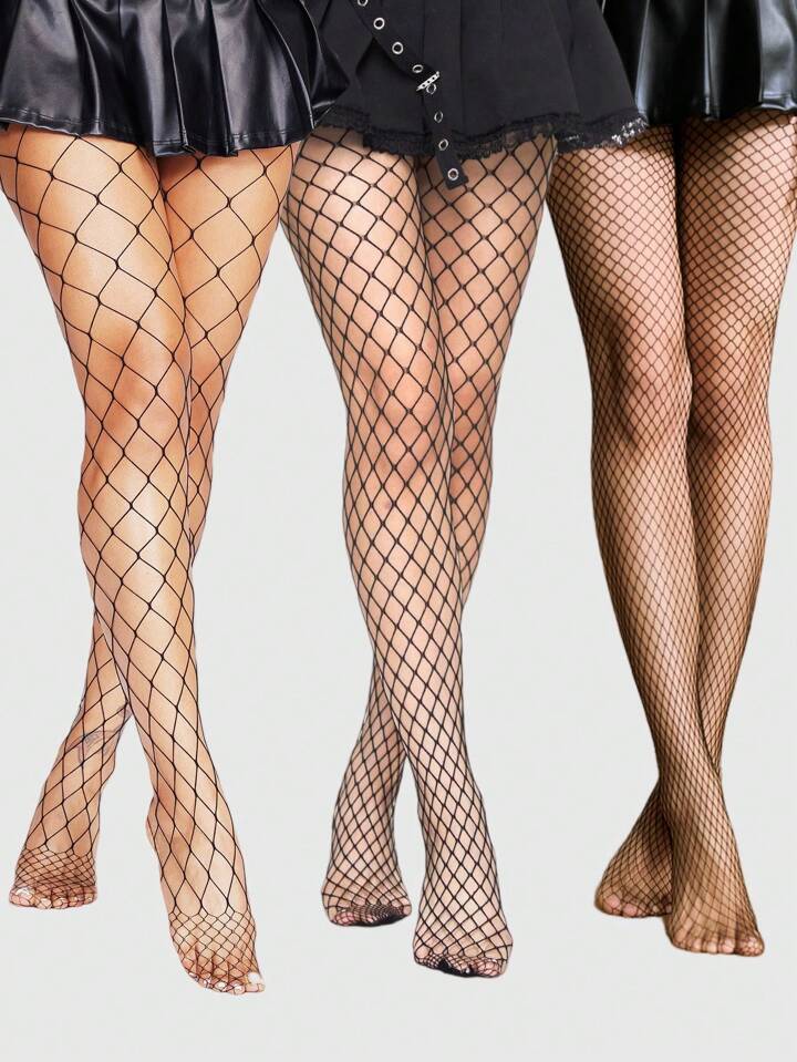 Goth 3 Paar schwarze Y2K einfache Netzstrümpfe, einfarbige enge Leggings, elastische vielseitige figurnahe Socken