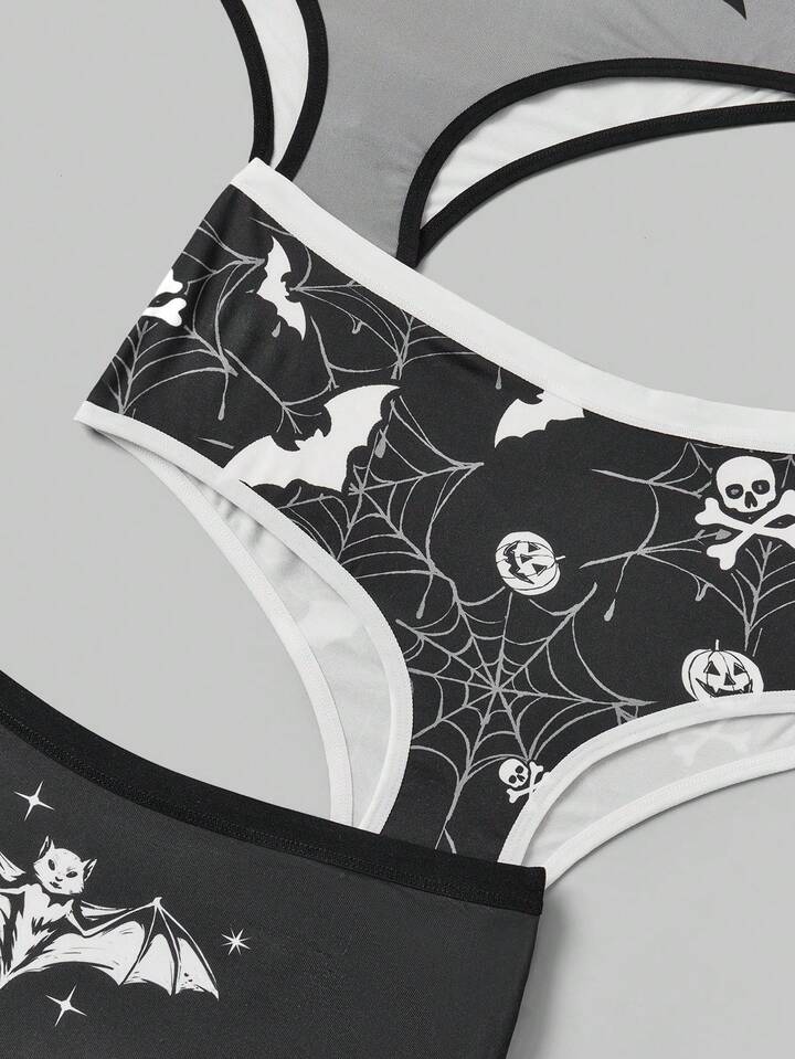 3 Stücke Gothic Totenkopf Spinne, Fledermaus Muster Strick Boxershorts