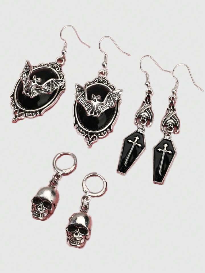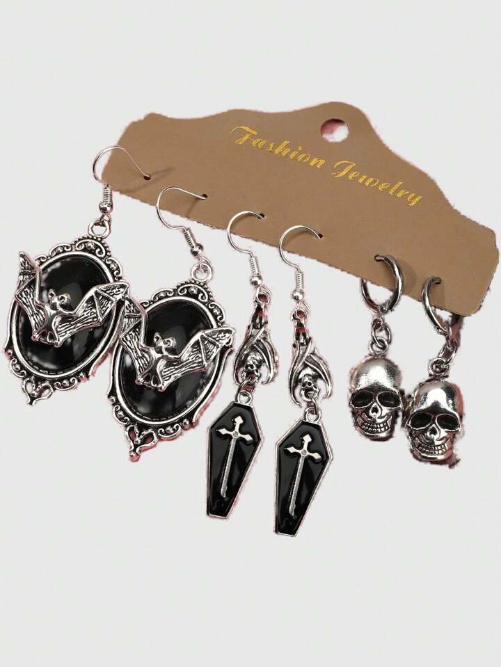 Goth 6 Stücke Ohrring Set mit Fledermaus- und Kreuz Design (Ohne Kartenhalter)
