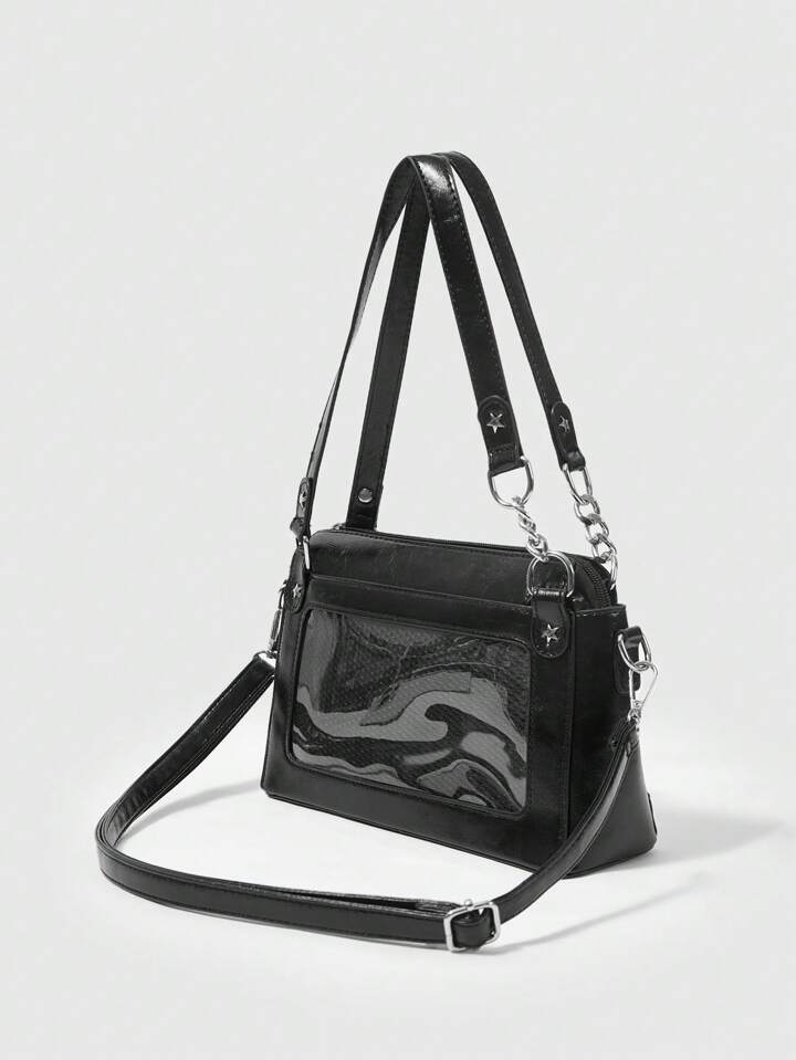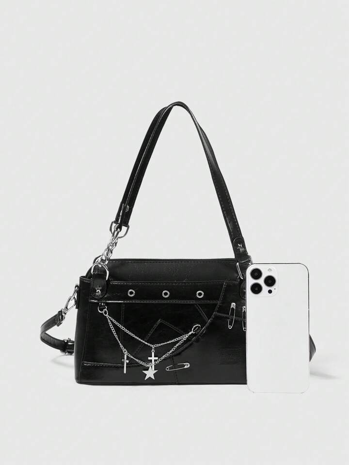 Goth Modische Schultertasche/Umhängetasche mit Ketten-Dekor im coolen Mädchen-Stil