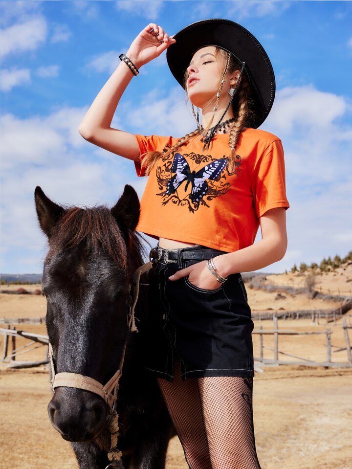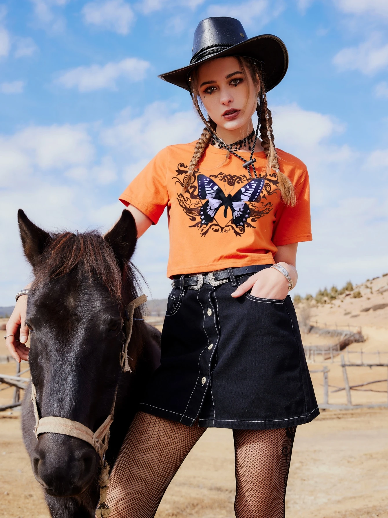 Goth Crop T-Shirt mit Schmetterling Grafik