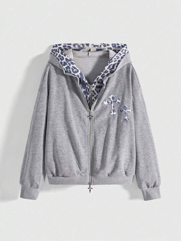 Goth Kreuz & Leoparden Muster 2 in 1 Sweatshirt