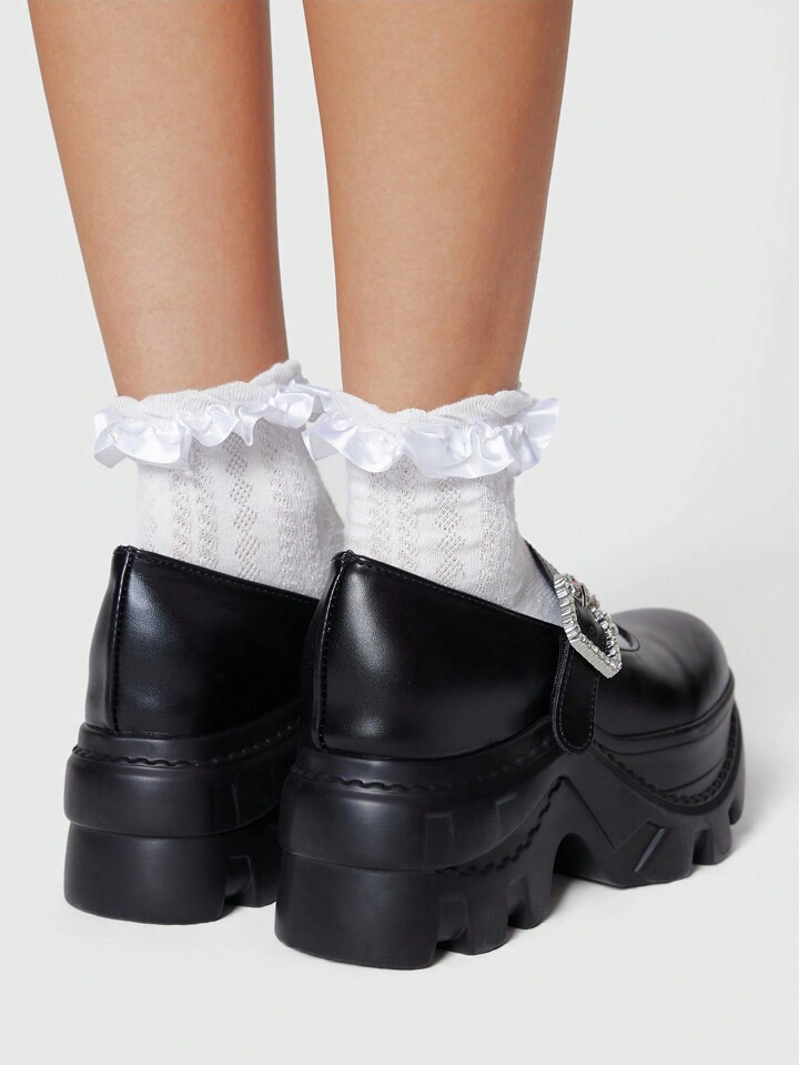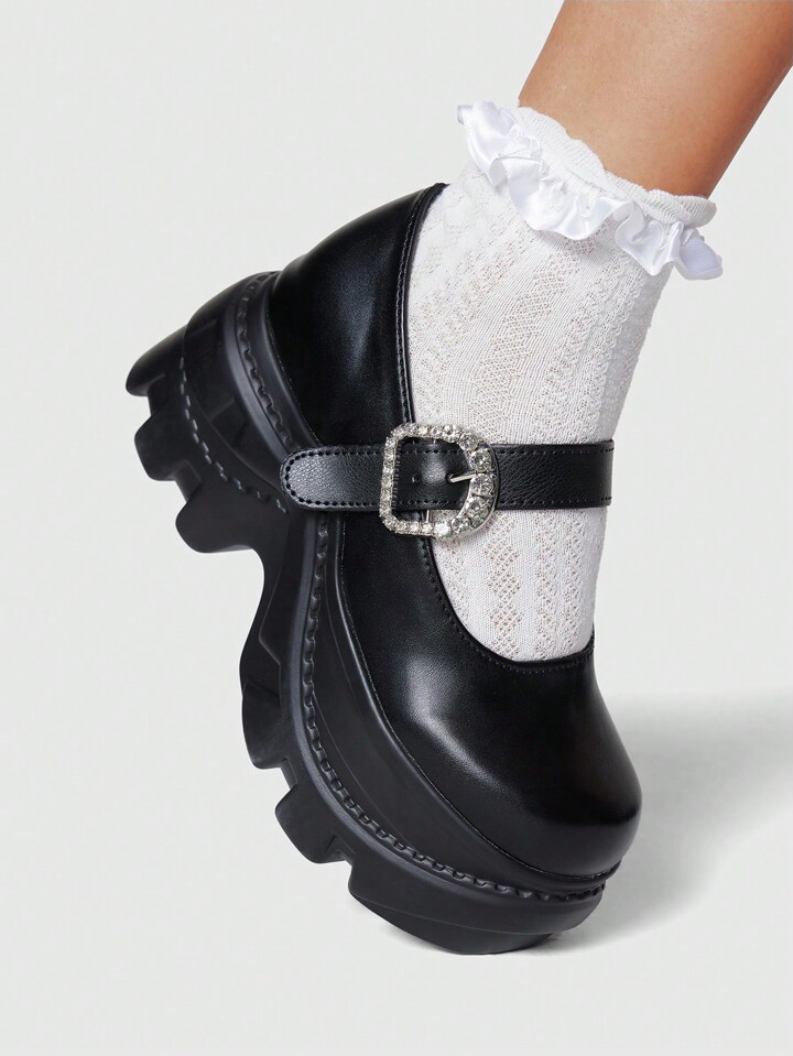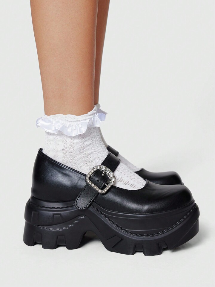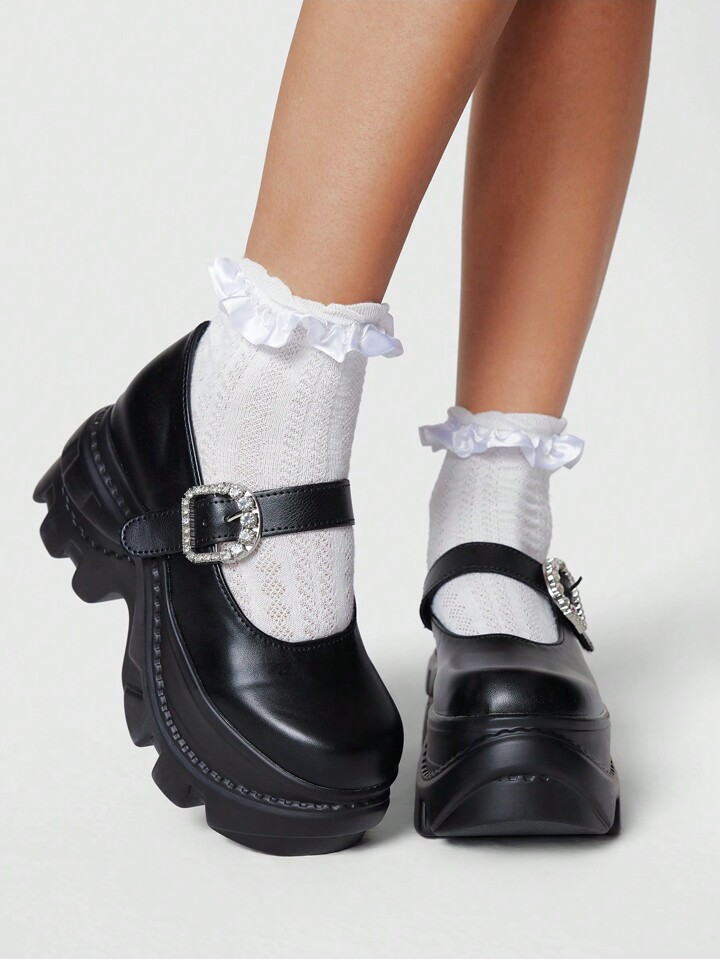 Dunkel Dunkel Punk Rock Party Sandalen mit geschlossener Zehenkappe, Riemen, Strass, Glitzer, britisch, Gothic Schuhe, Retro Mary Jane Plateauschuhe mit Absatz für Damen