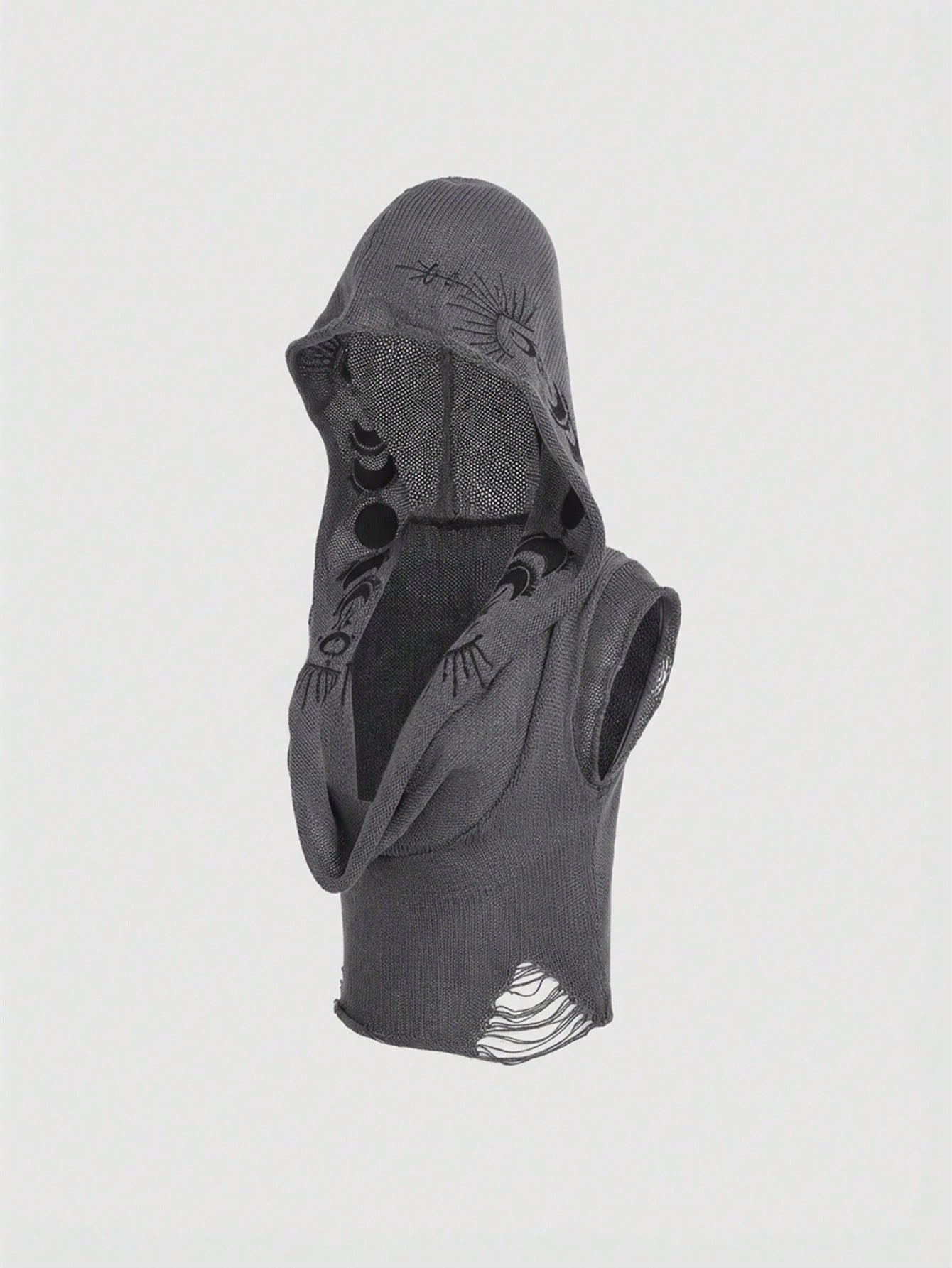 Goth Dunkel Hippie Stern & Mond bestickte Hexen Kapuzen-Schal Kragen durchsichtige Strick Bluse für Frauen