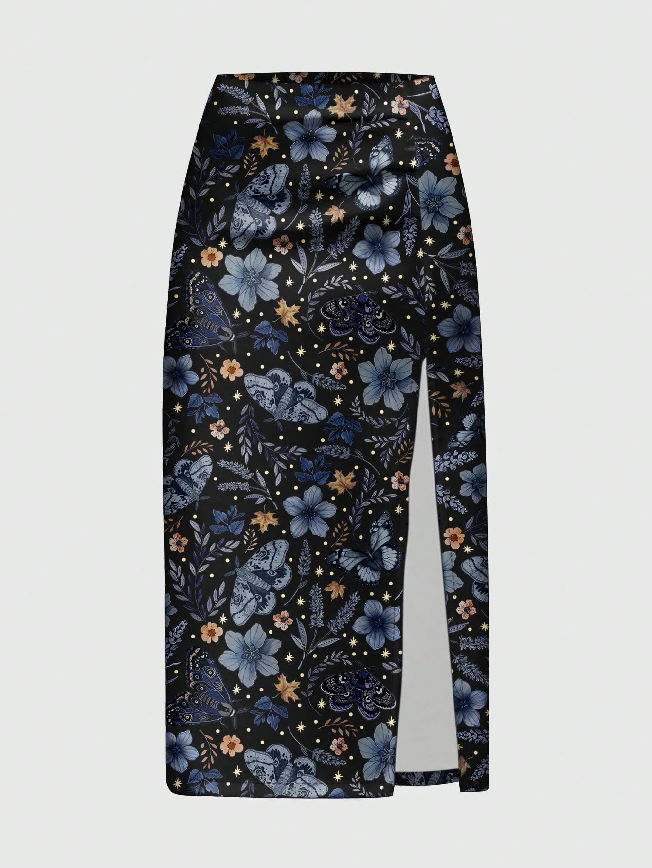 Goth Dunkel mysteriöser Schmetterling Blatt Sonne Mond Stern Schmetterling & Motte Hoher Schlitz Rock für Frauen