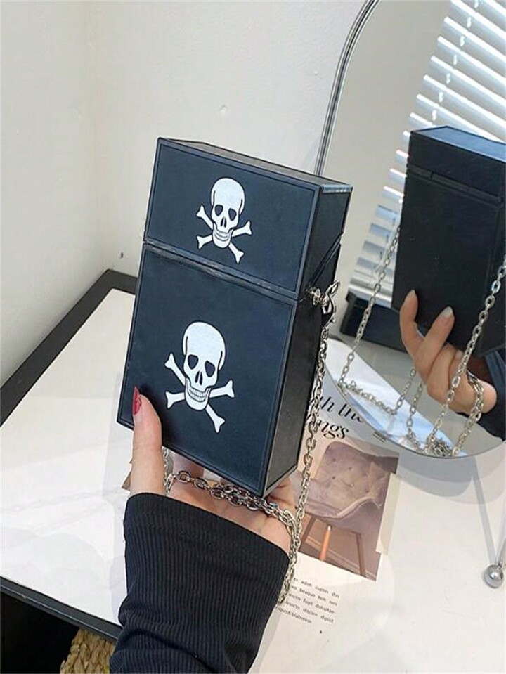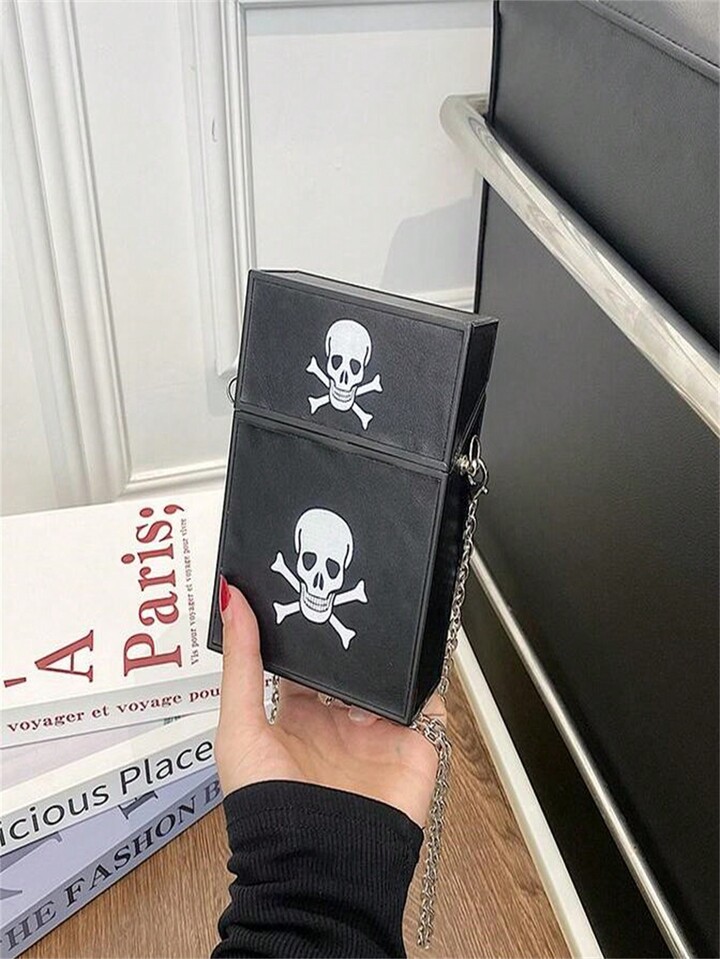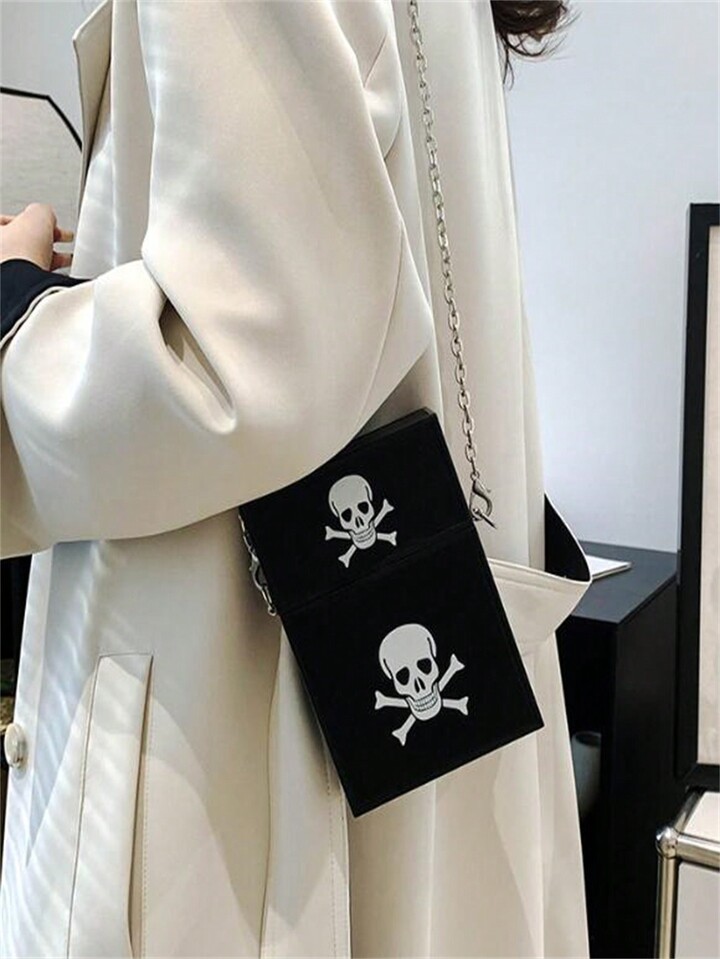 Goth Umhängetasche mit dunklem Totenkopf Muster und Kettenriemen, Mode