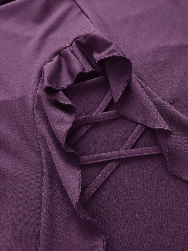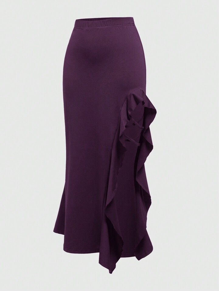 Goth Eleganter einfarbiger Rock mit Rüschensaum und Schlitz, Frühling Sommer