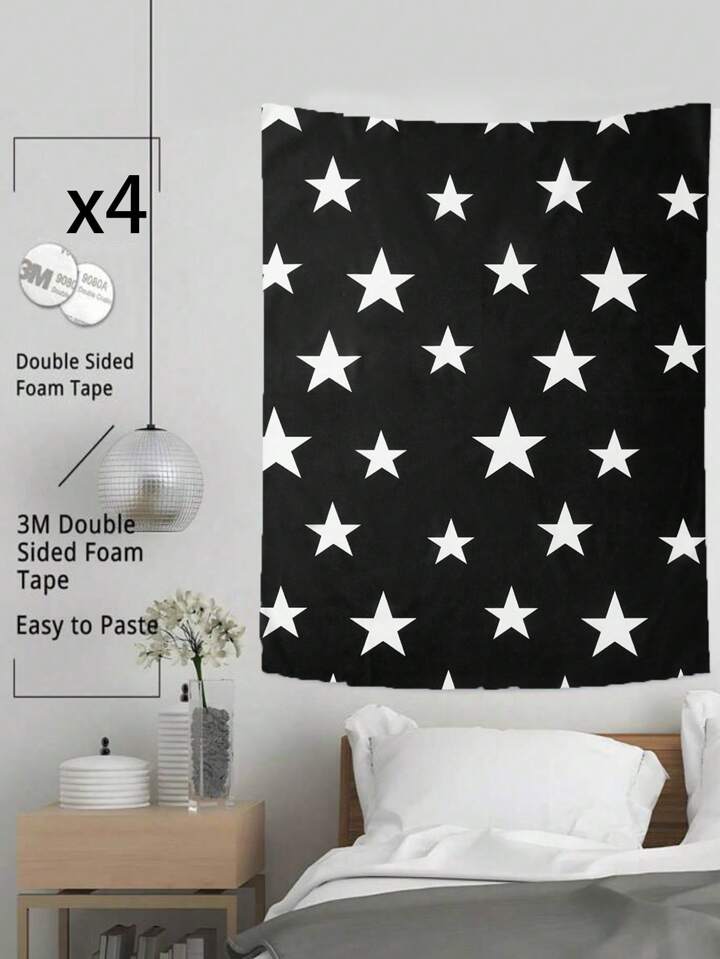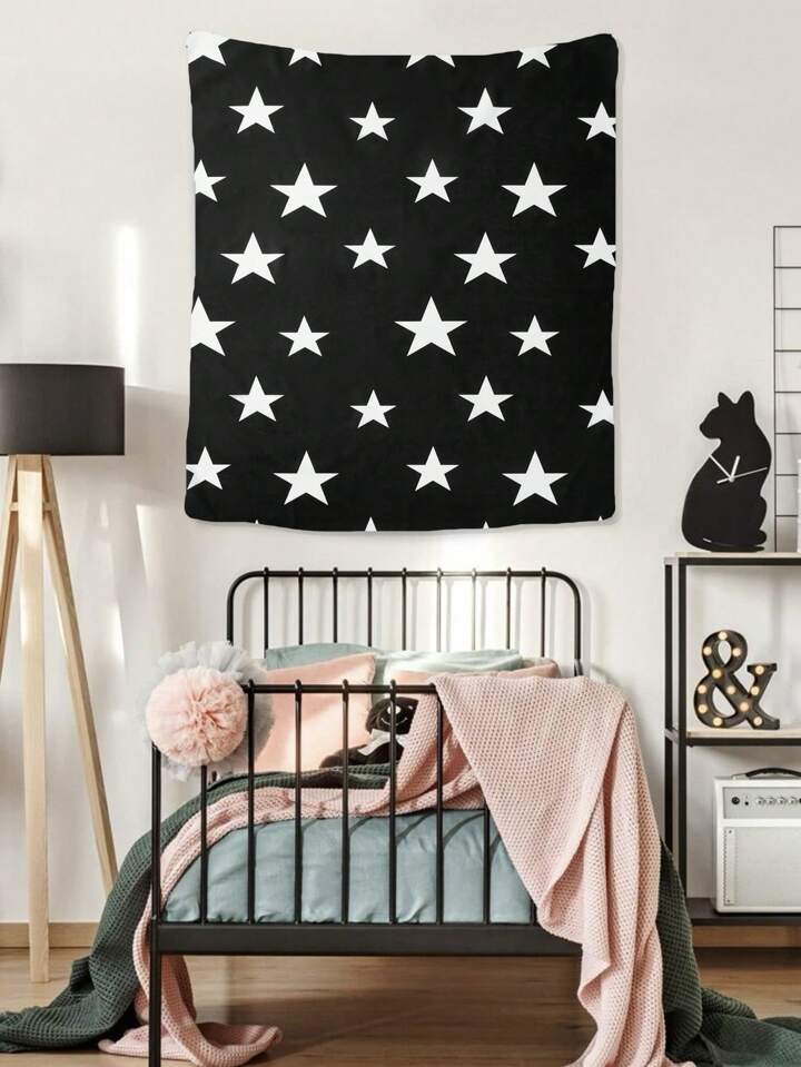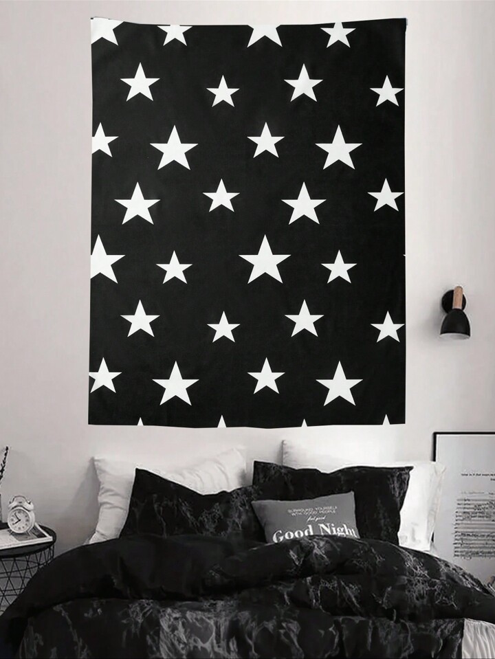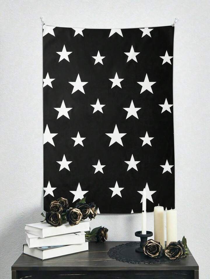Goth Modische Schwarze Und Weiße Stern Und Fünfstern Stil Wandteppich, Schlafzimmer Und Wohnheim Wanddekoration