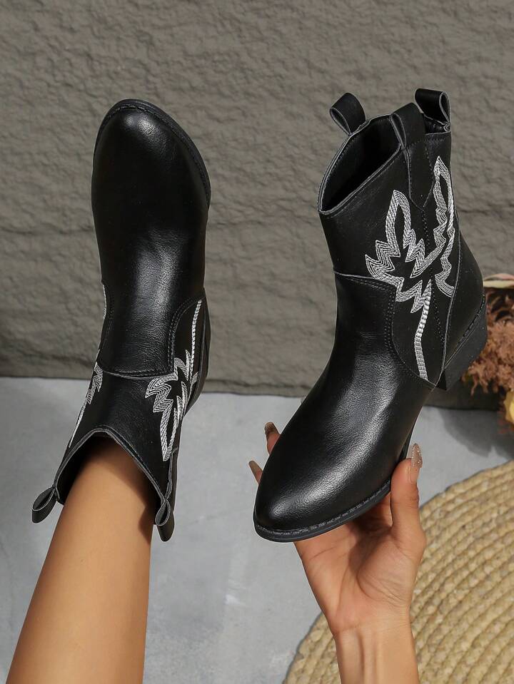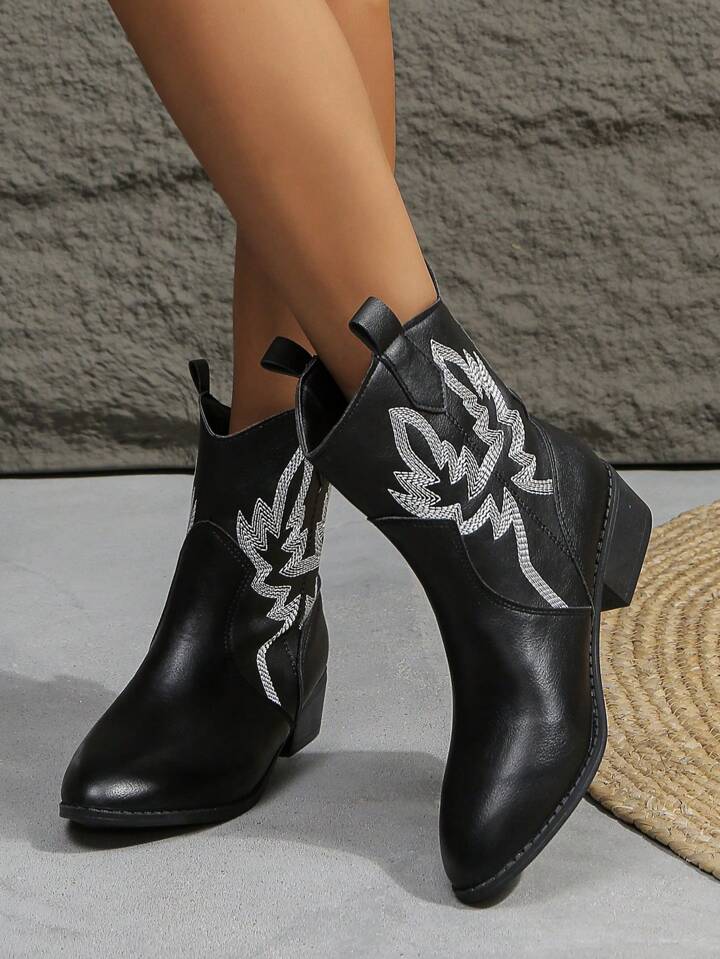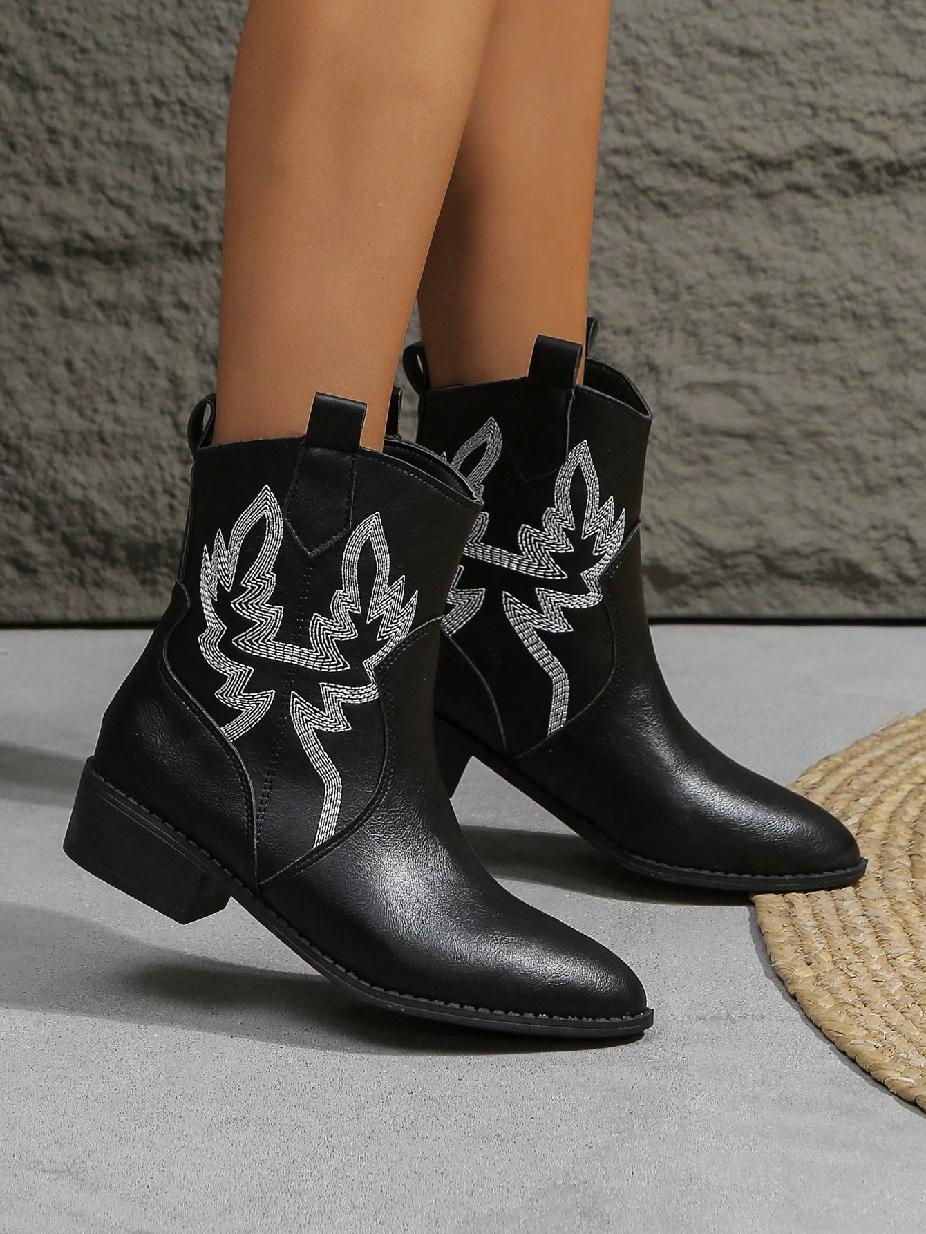 Goth Chunky-Heeled Westernstiefel mit Feuergrafik, Cowboystiefel für Frauen
