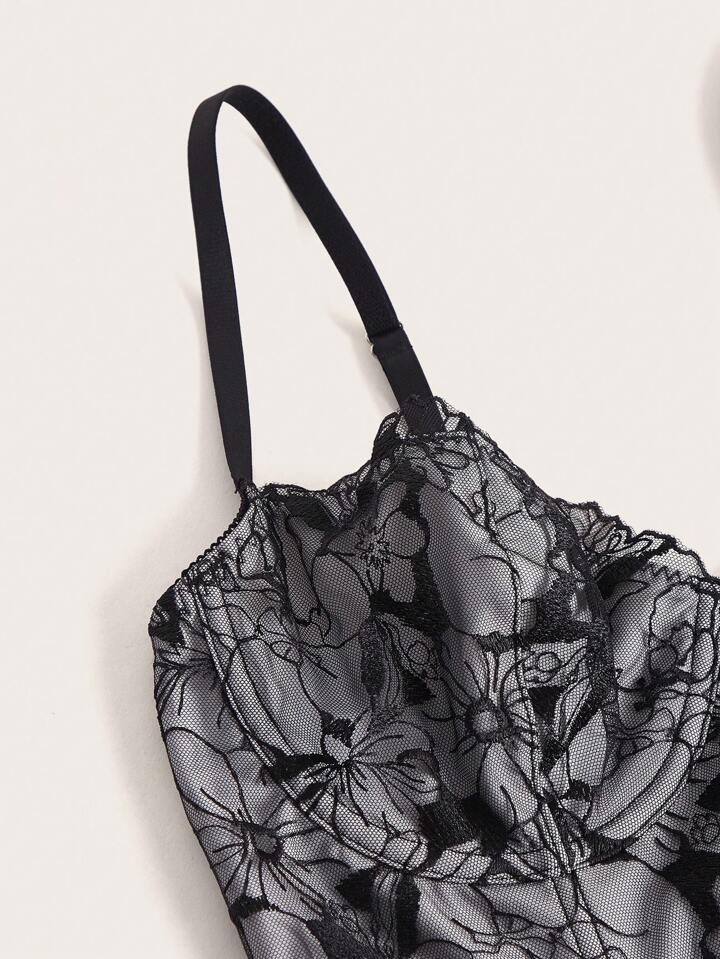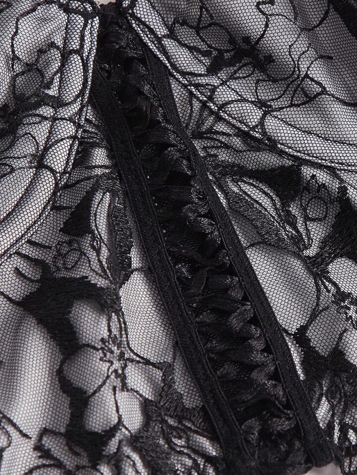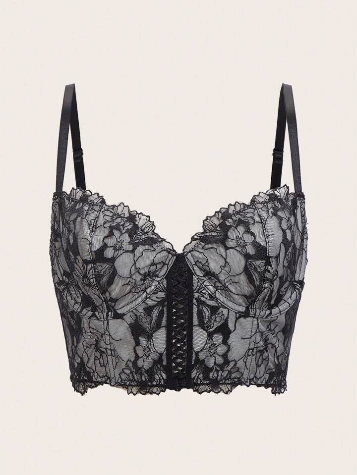 Goth Geblümter Spitzen Cami BH mit Schnürung vorne