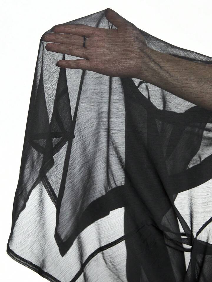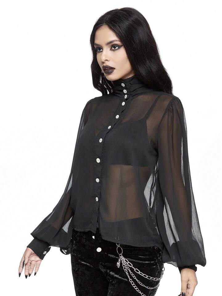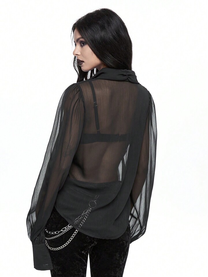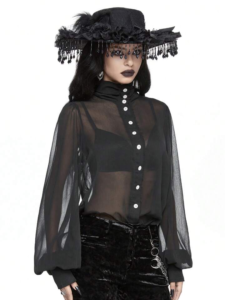 Goth Gotischer Palast Stil Damen Chiffon Laternenhülse halb transparente Chiffon Bluse, mit Innenfutter und Satin Bikini Top enthalten