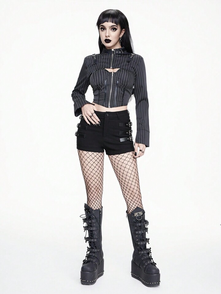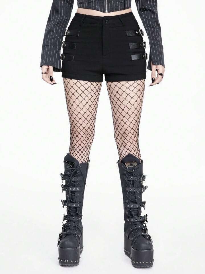 Ultra-Kurze Elastische Skinny Shorts für Frauen mit Grunge Punk Gothic Style Metal Gürtelschnalle Dekor