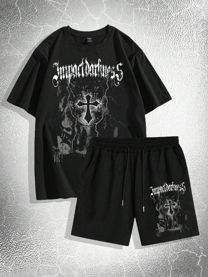 Goth Männer Kreuz, Grafik, T-Shirt mit & Tunnelzug, Shorts mit