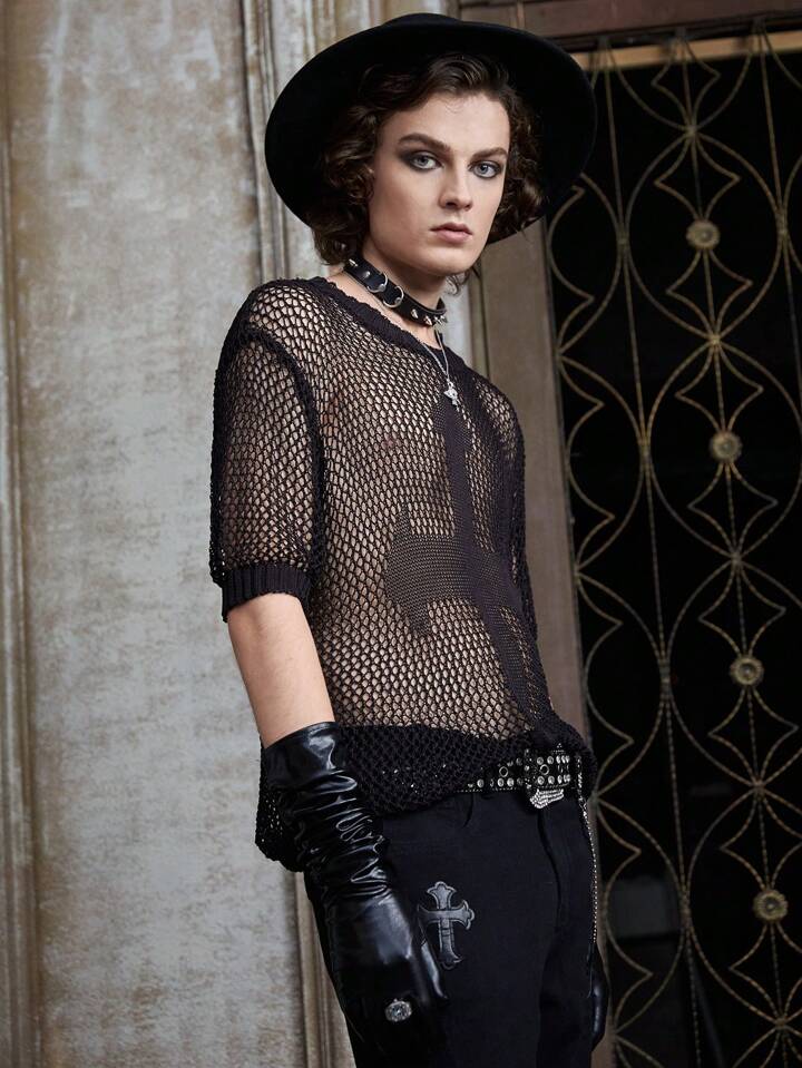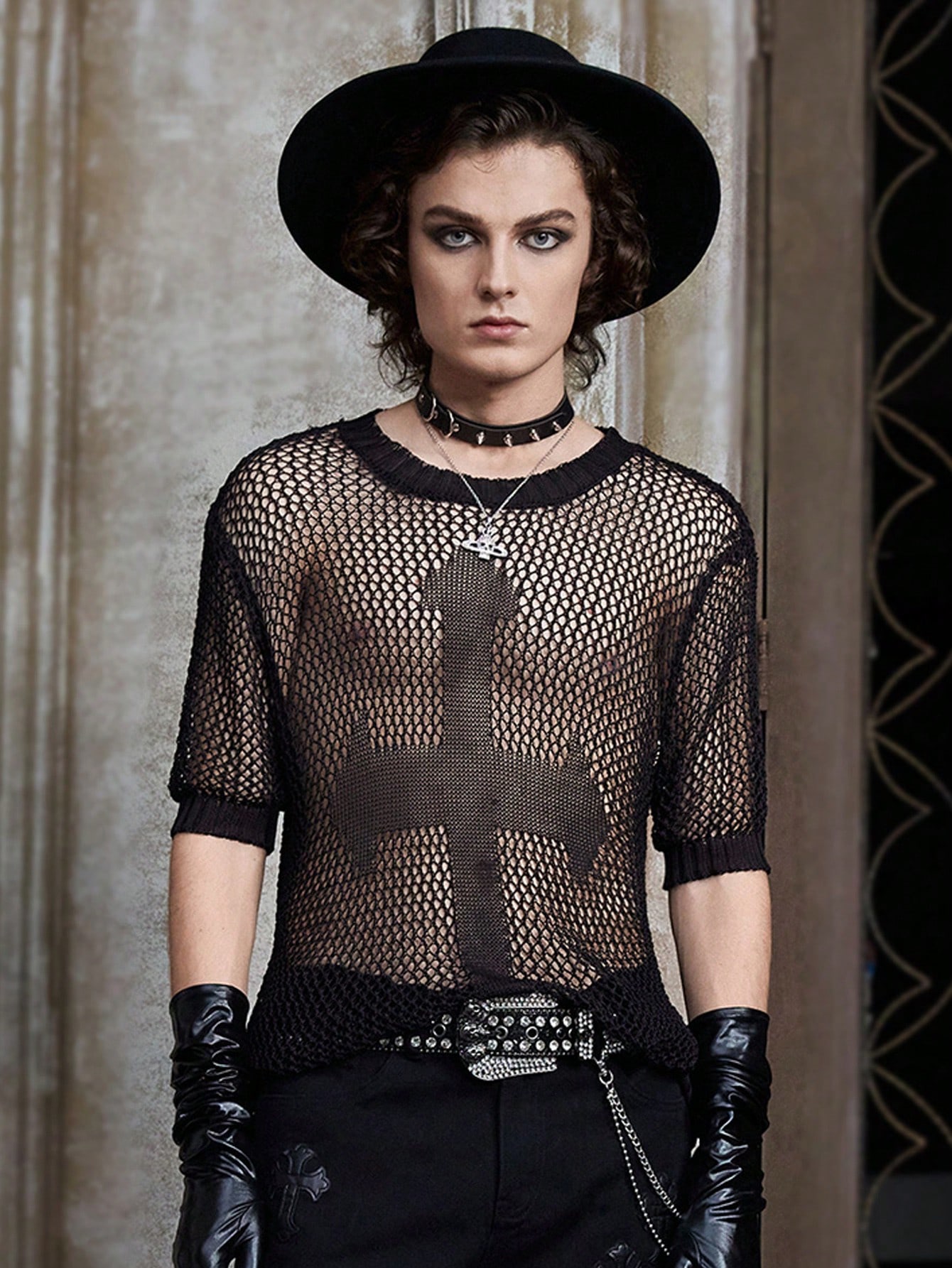 Goth Jungen Ausgehöhltes Strickoberteil mit Kreuzmuster