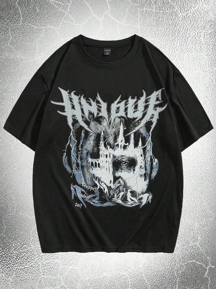 Goth Männer T-Shirt mit Buchstaben Grafik,