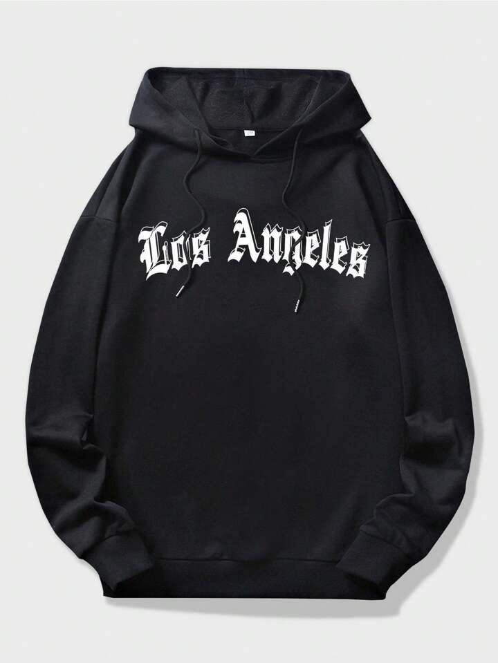 Goth Männer Hoodie mit Buchstabe Taube Muster, Tunnelzug