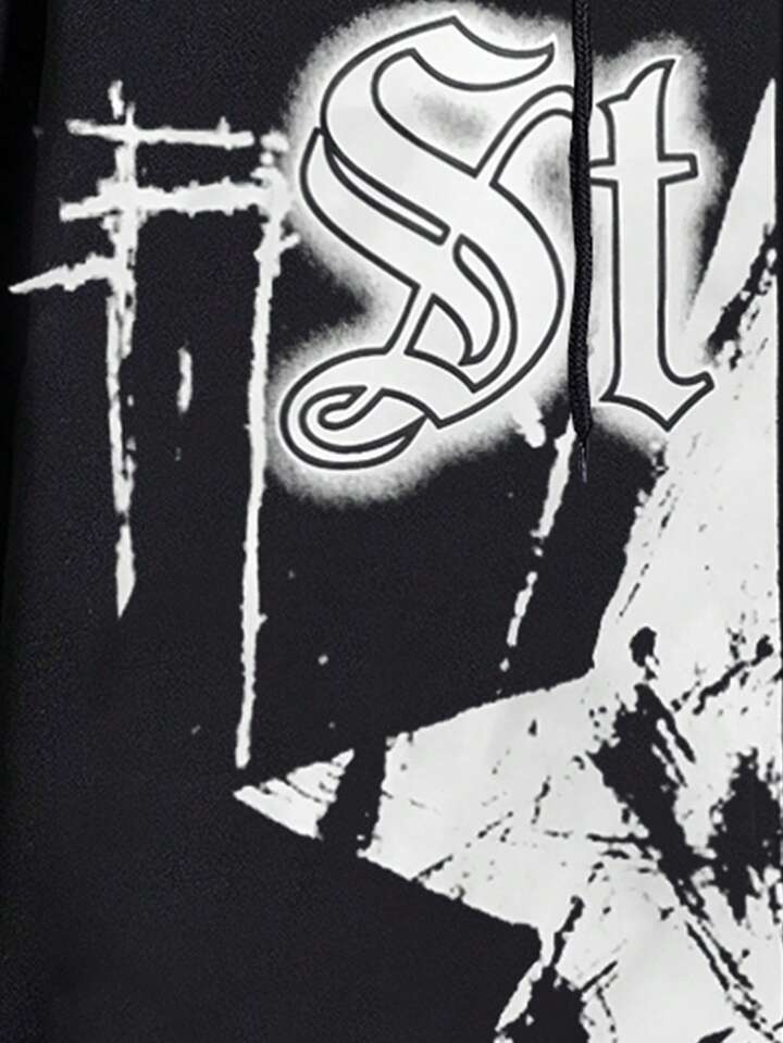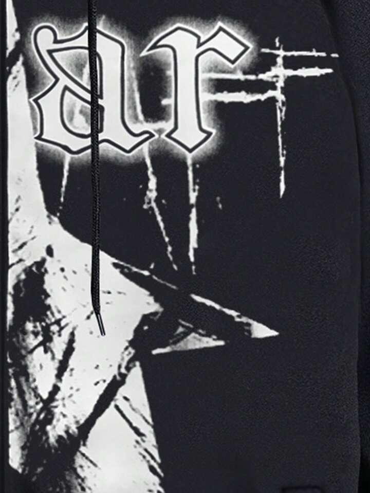 Goth Männer Hoodie mit Buchstabe Stern Grafik, Reißverschluss, Tunnelzug,