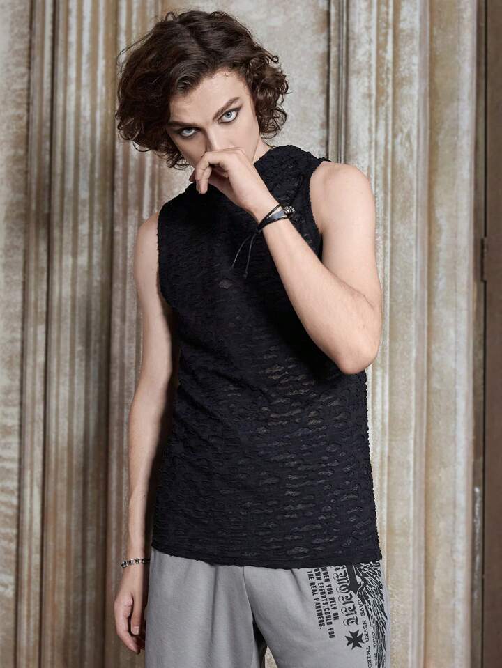 Goth Jungen Zerrissenes Tanktop mit Kapuze