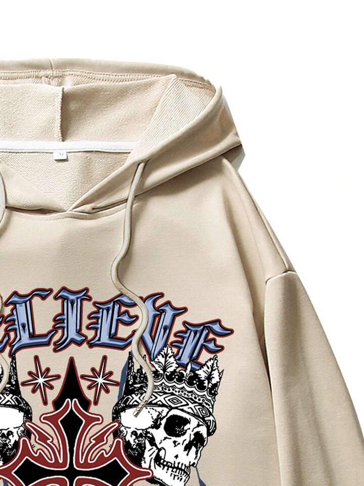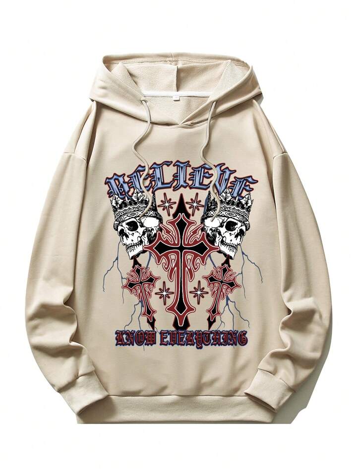 Goth Männer Hoodie mit Schädel & Buchstaben Grafik, Tunnelzug,