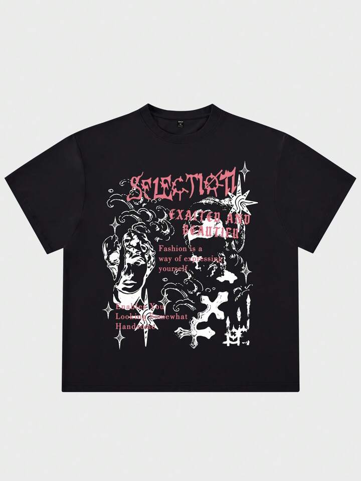 Goth Männer T-Shirt mit Buchstaben & Figur Grafik,