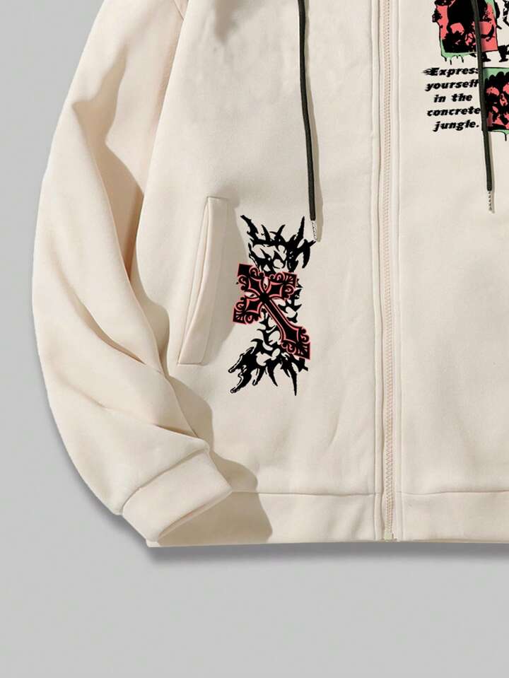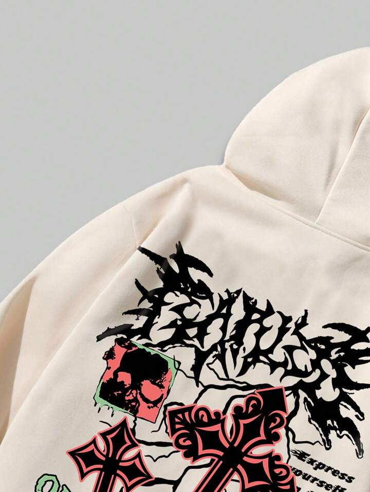 Goth Männer Hoodie mit Buchstaben Grafik, Tunnelzug, Thermal Futter,