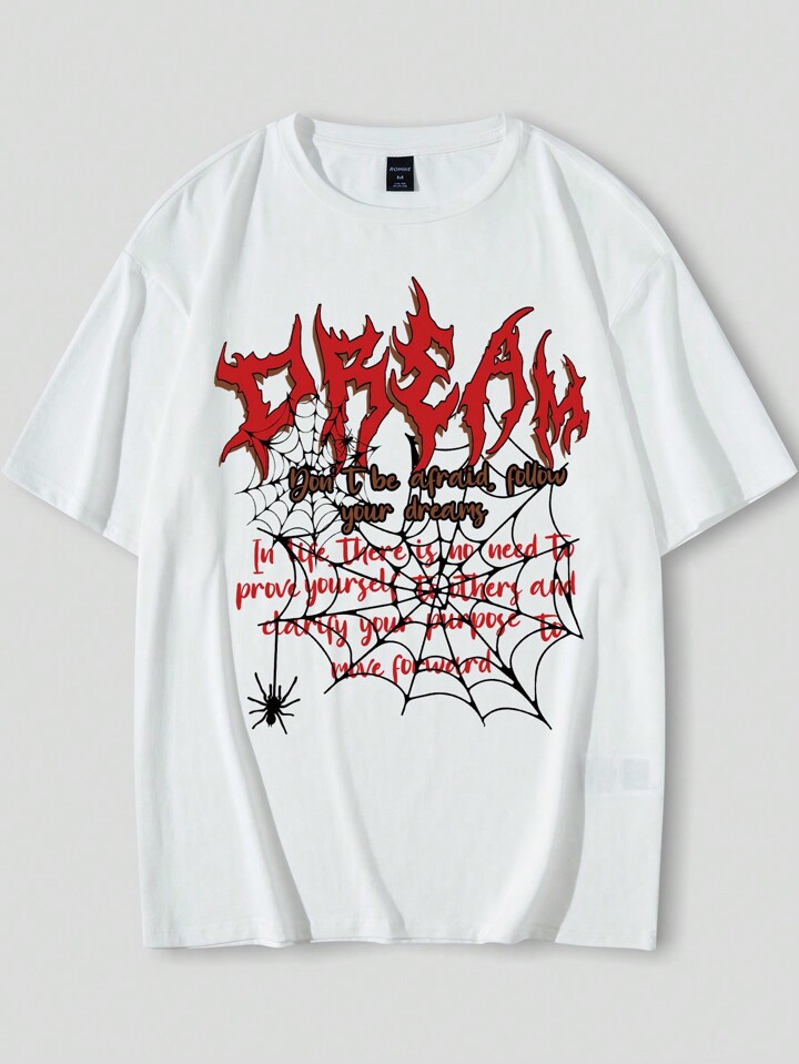 Goth Männer T-Shirt mit Buchstaben Spinnennetz & Spinne Grafik