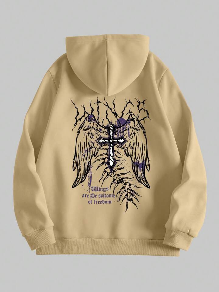 Goth Jungen Thermo Kapuzenpullover mit Reißverschluss und Aufdruck „& Wings“.