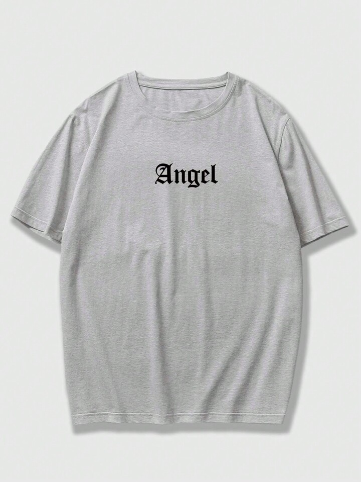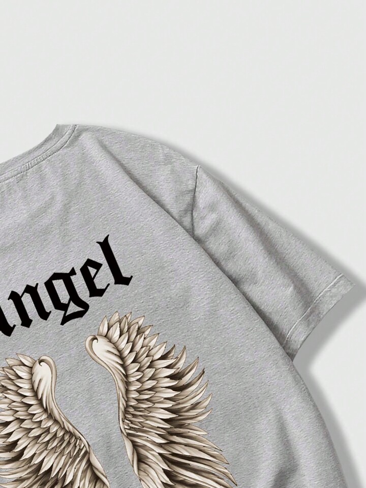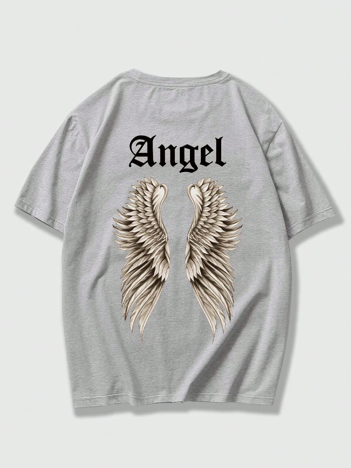 Goth Männer T-Shirt mit Flügeln & Buchstabe Grafik,